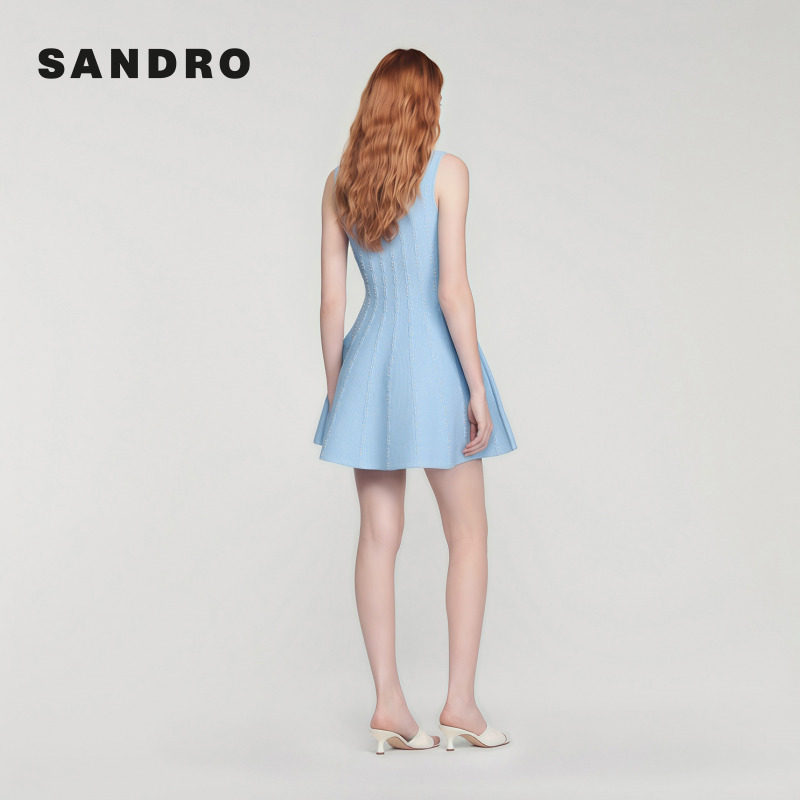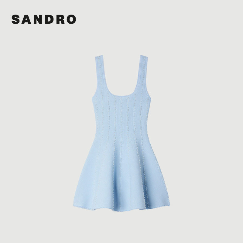仿钻饰竖向纹理A字型修身 法式 吊带连衣裙 女装 SANDRO2026早春新款