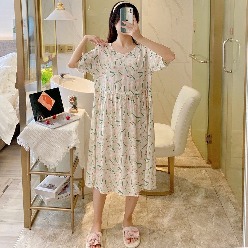 连衣裙宽松睡衣家居服 甜美A类纯棉短袖 俞兆林7A抗菌睡裙夏季 女款
