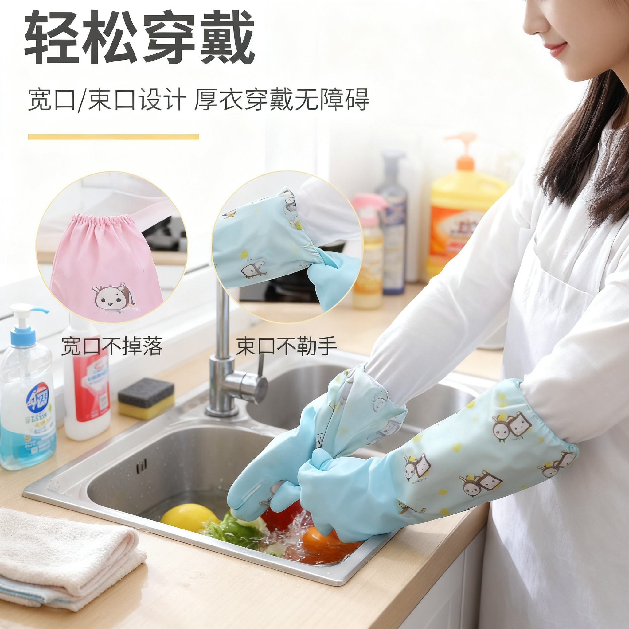 洗碗手套女厨房加绒加厚橡胶洗衣服专用防水乳胶耐磨家务清洁耐用