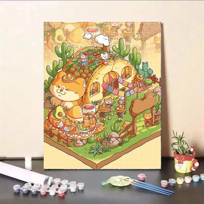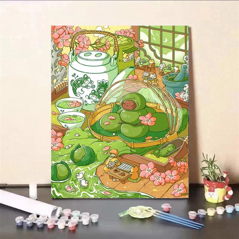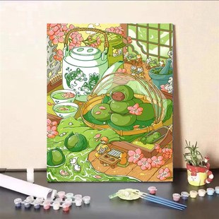 数字油画2023新款 客厅三联油彩画diy填色画高端手工高级感丙烯画