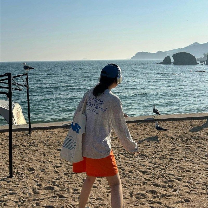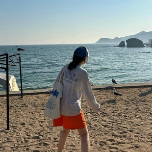 新高腰多功能宽松阔腿 为妇女夏季 夏季 多巴胺橙色沙滩运动休闲短裤