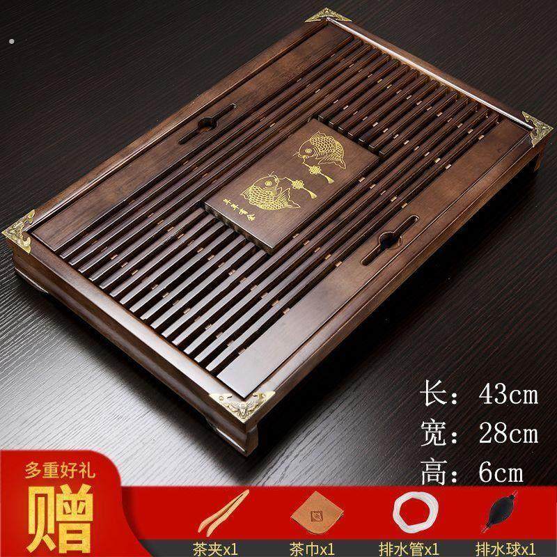 实木茶盘家用简约竹制储水茶海托盘功夫茶具套装 排水小茶台 抽屉式