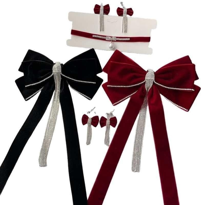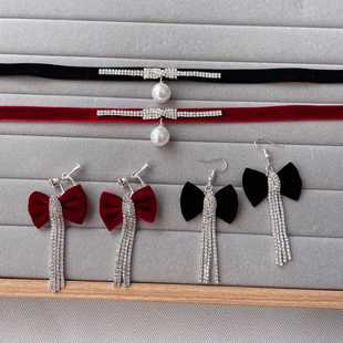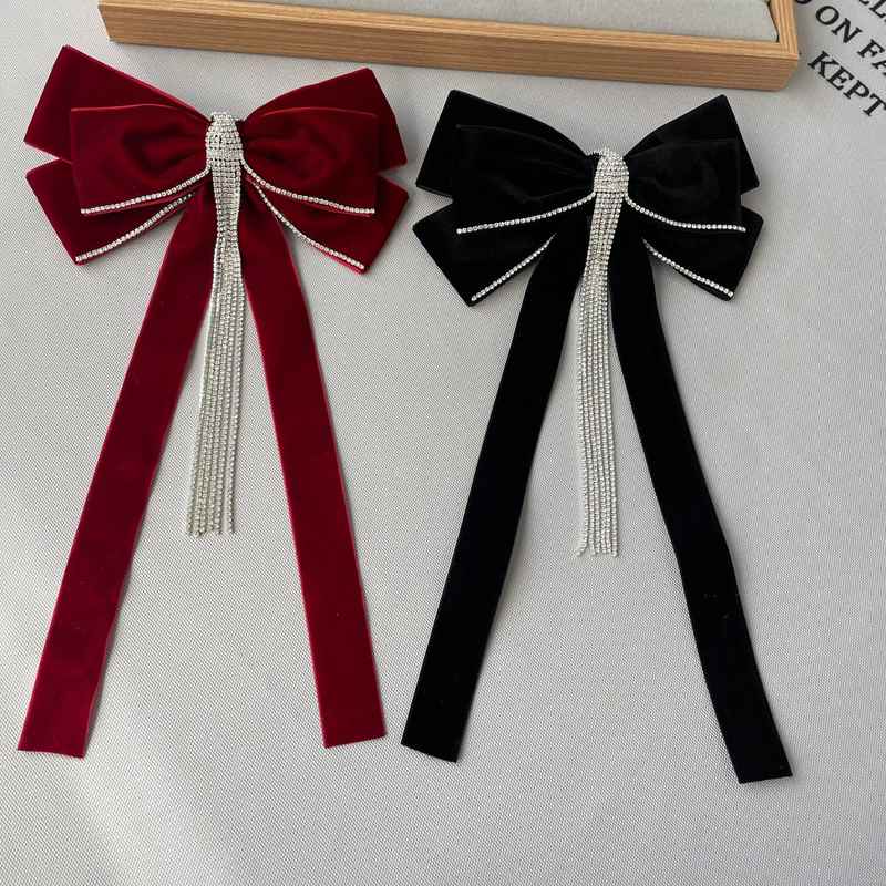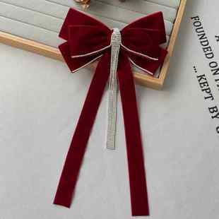 红色丝绒蝴蝶结发夹女敬酒服头饰高级感新娘后脑勺半扎发弹簧夹子