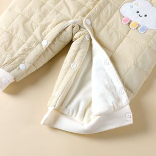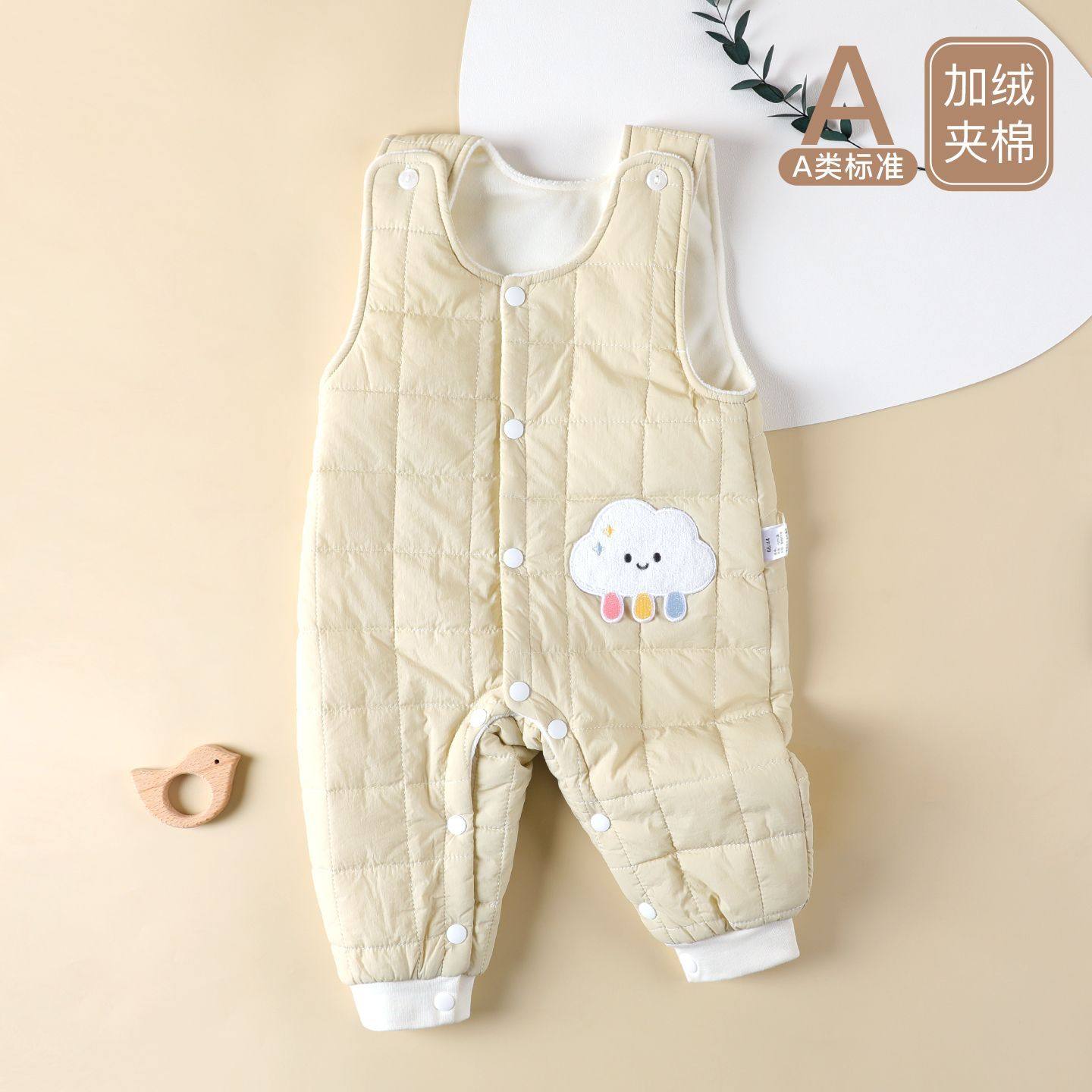 子幼儿加绒加厚保暖 小月龄女宝宝男连体夹棉裤 婴儿背带裤 秋冬款