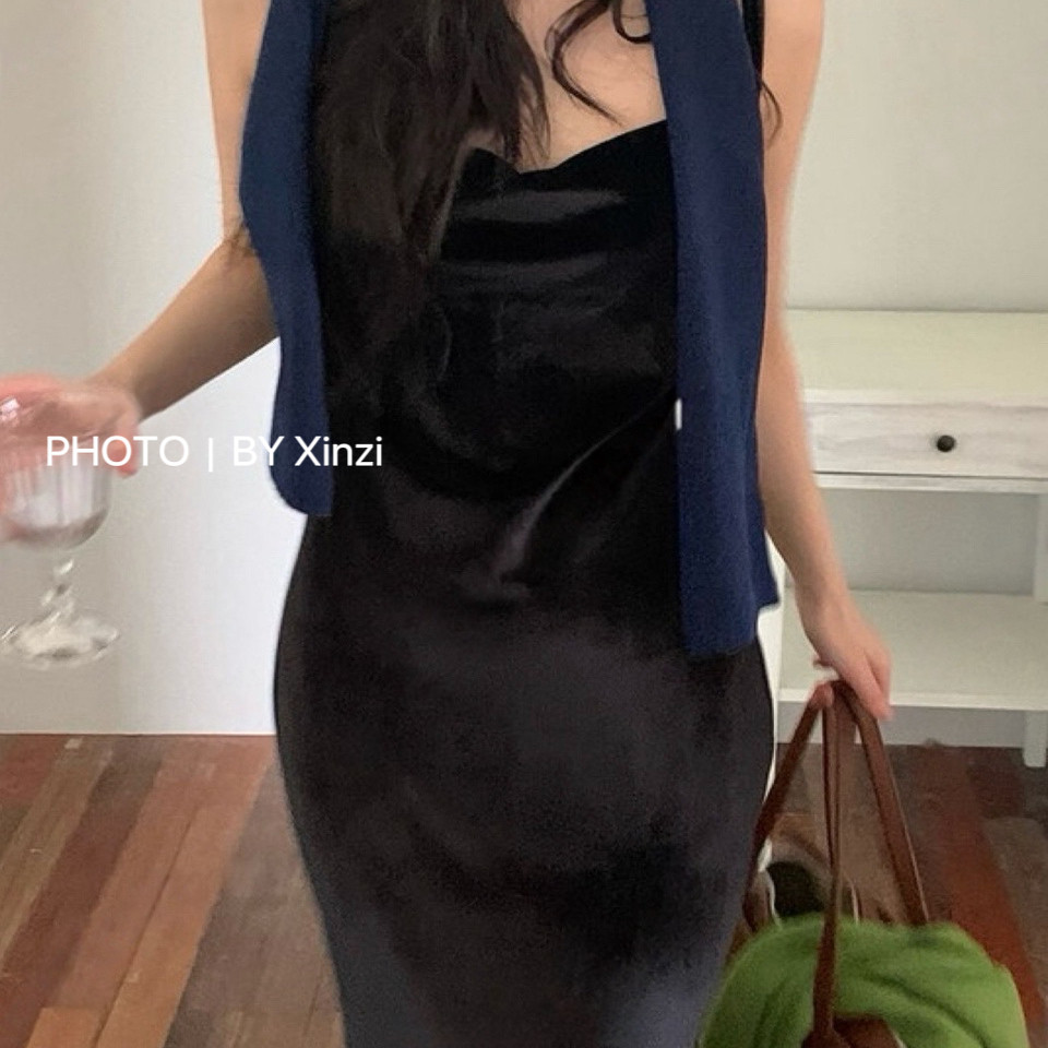 显瘦气质轻熟优雅风中长裙 吊带连衣裙女收腰修身 辛子韩国代购 法式