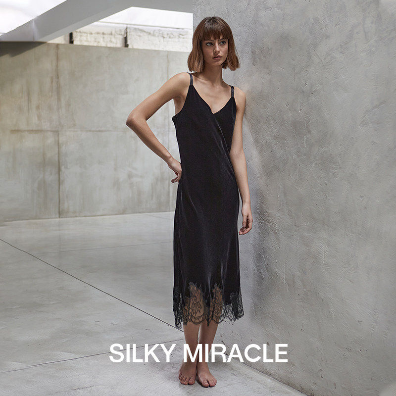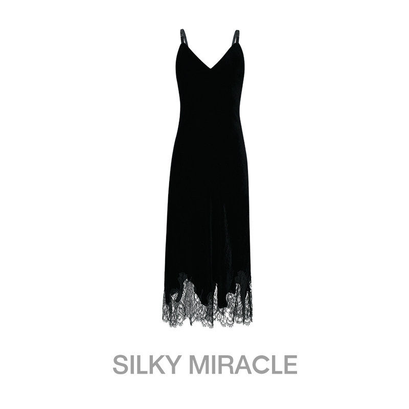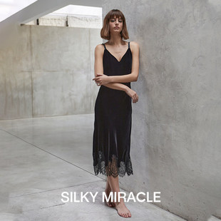 今夕何夕性感睡衣女秋冬季 蕾丝纯欲风带胸垫冰丝吊带睡裙 2025新款
