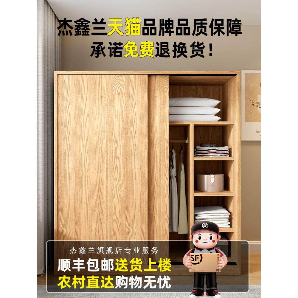 衣柜家用卧室简约推拉门实木质衣橱小户型移门收纳柜出租房儿童柜