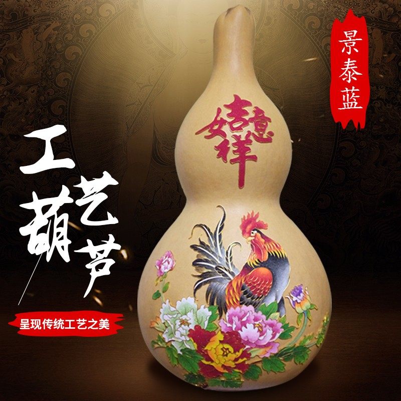 天然景泰蓝工艺葫芦纯手工掐丝特大彩绘真葫芦摆件店铺家居装 饰品