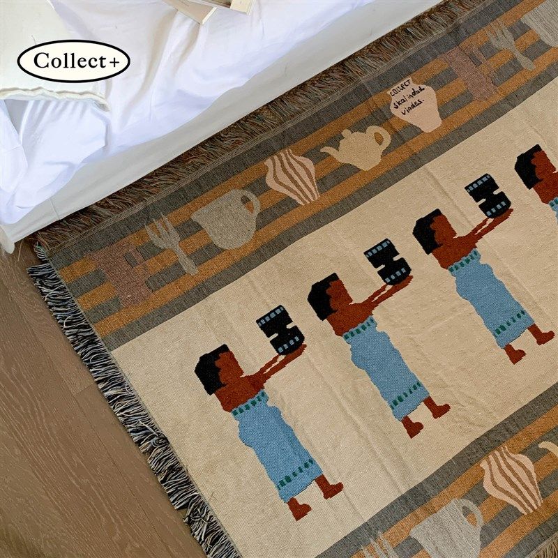 中古风针织可爱小毯子桌布餐垫沙发巾装 饰布挂毯毛边壁毯床上盖毯