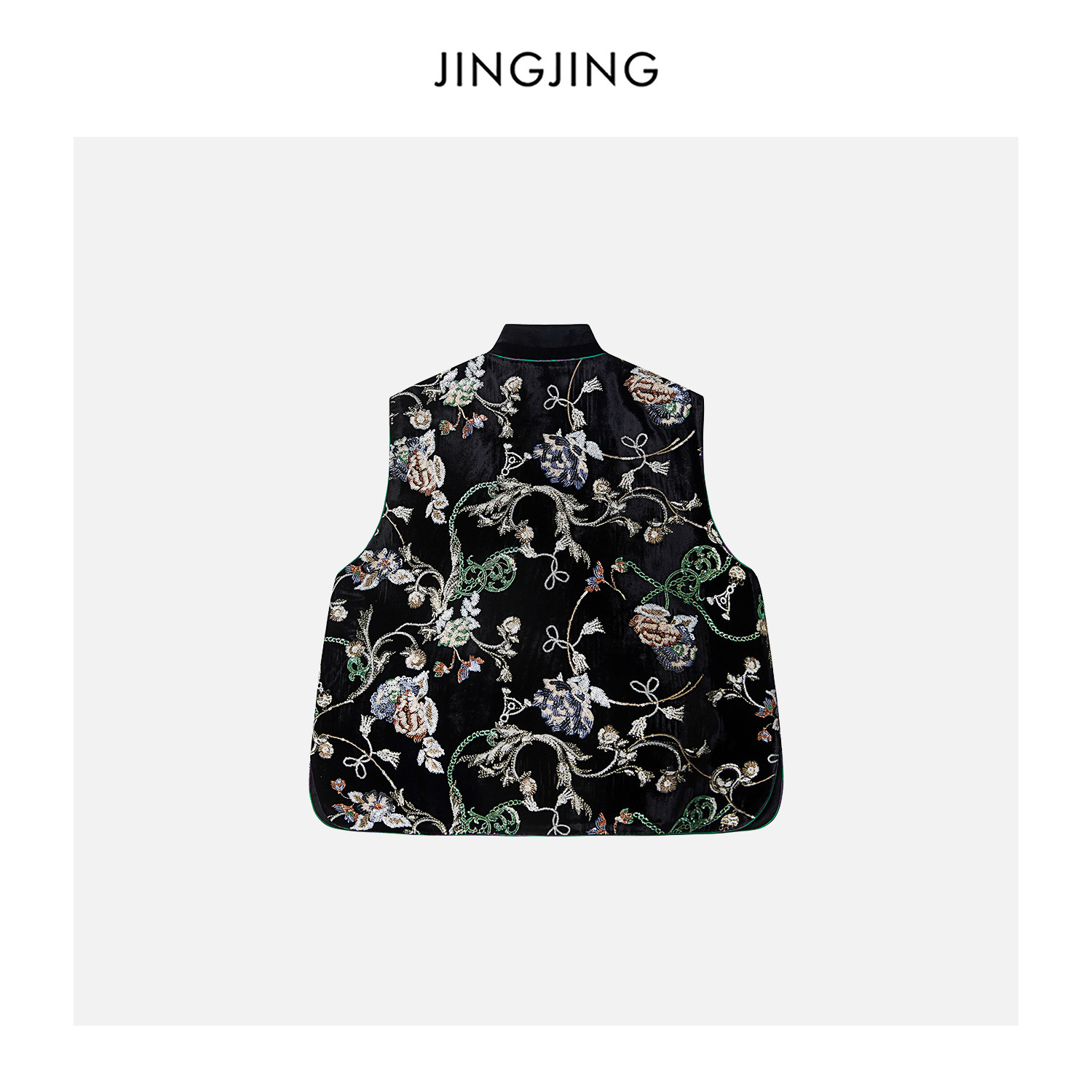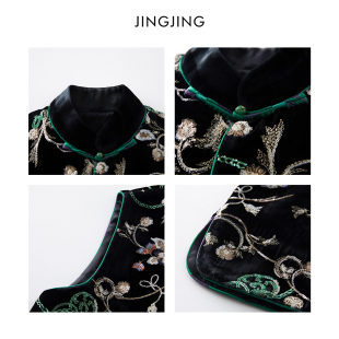韵味马甲 真丝黑丝绒繁花珠片刺绣中式 JINGJING2026新款 夜棠
