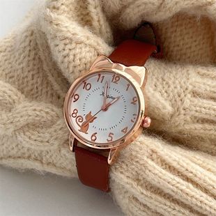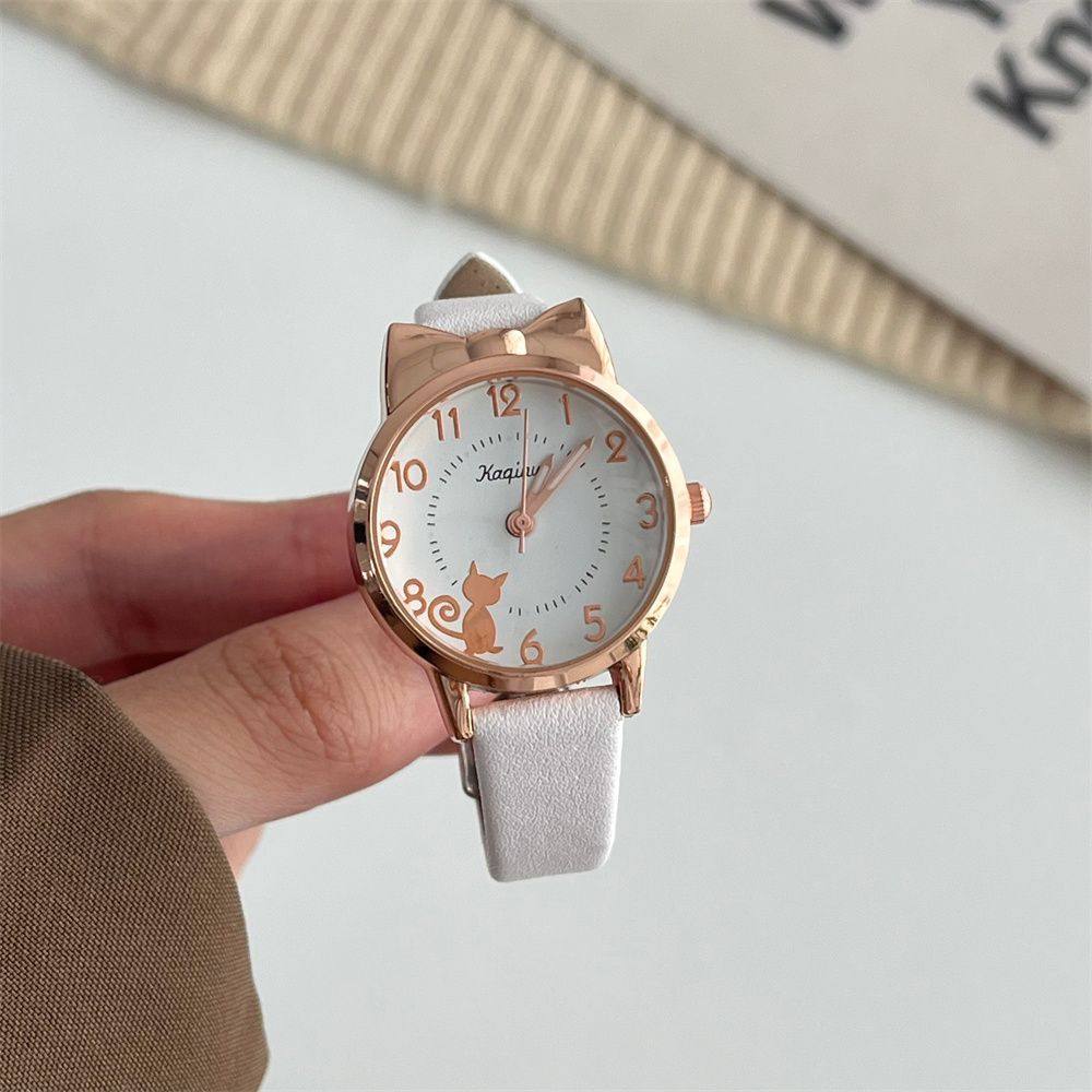 儿童石英表男女学生创意少女孩初高中考试猫咪手表看时间夜光普通