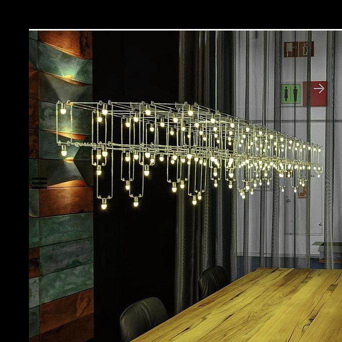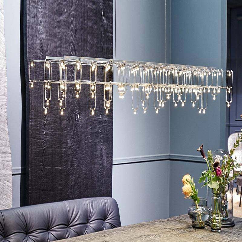 北欧轻奢水晶长形餐厅吊灯不锈钢花火造型奢华时尚 吧台前台吊灯