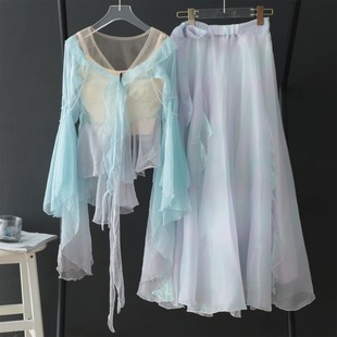费尔岛两件套装 安妮不火 气质毛织披肩&双排扣呢外套裙女微胖大码