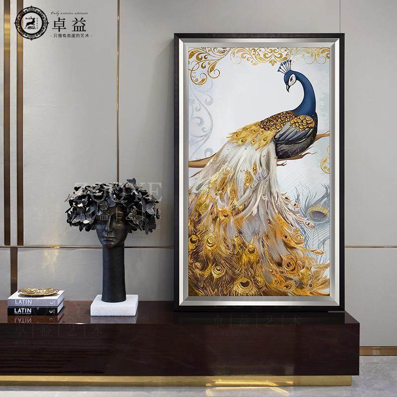 客厅过道走廊挂画大墙面美式 欧式 轻奢高档壁画 饰画竖版 孔雀玄关装
