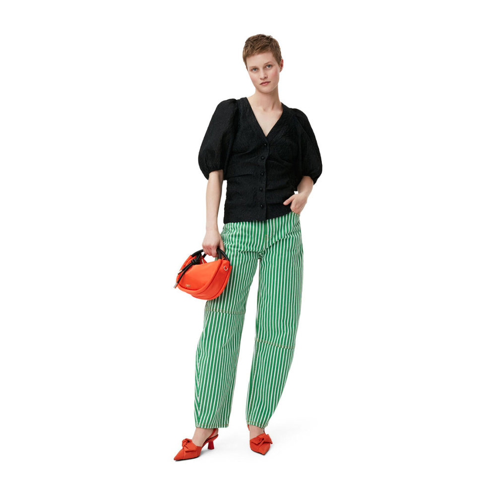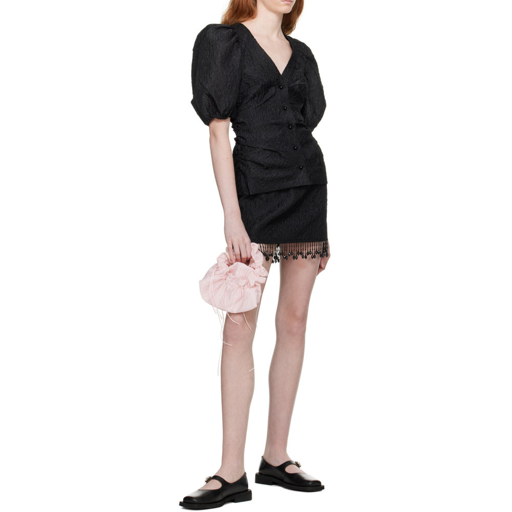 SS2023 黑色 JACQUARD GANNI WITH F7450099 BLOUSE PUF 女士衬衫