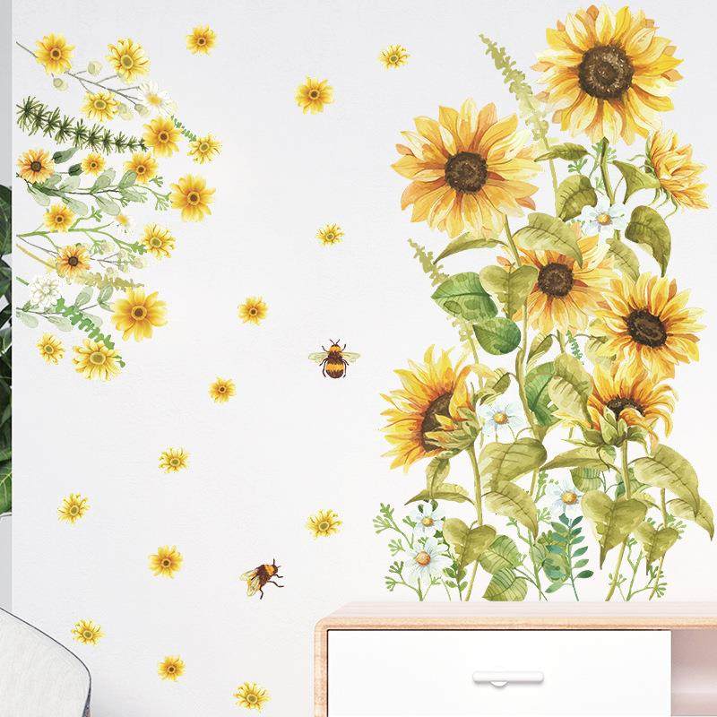 饰墙贴纸自粘 C245温馨向日葵花客厅卧室床头玄关墙面美化装 新