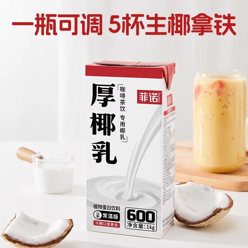 菲诺厚椰乳1kg 整箱椰奶后椰乳生椰拿铁奶茶店商用咖啡专用 12盒装