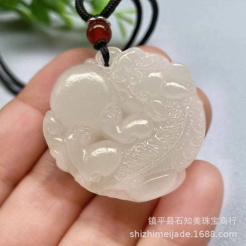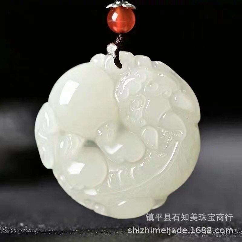 白玉玉石貔貅挂件 男女款 直播货源地摊模式 阿富汗玉抱球貔貅吊坠