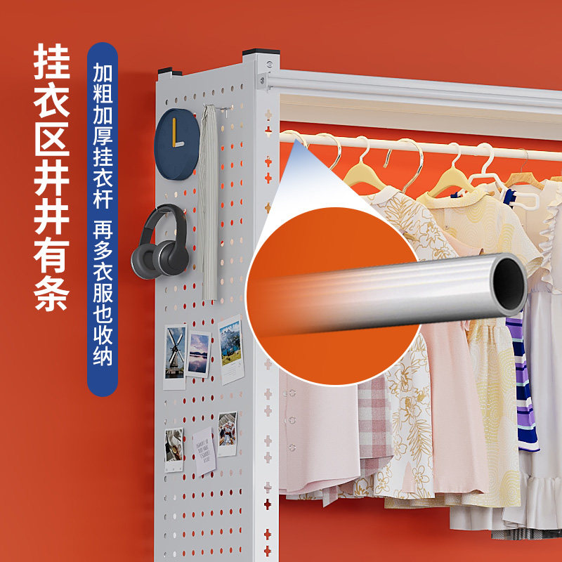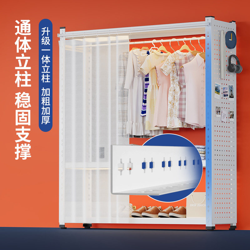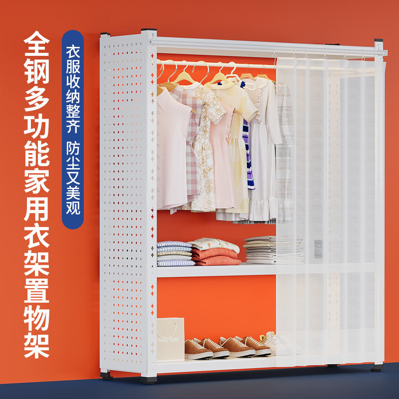 家用组合衣柜钢制多层置物架金属开放式 落地挂衣架衣服收纳衣帽架