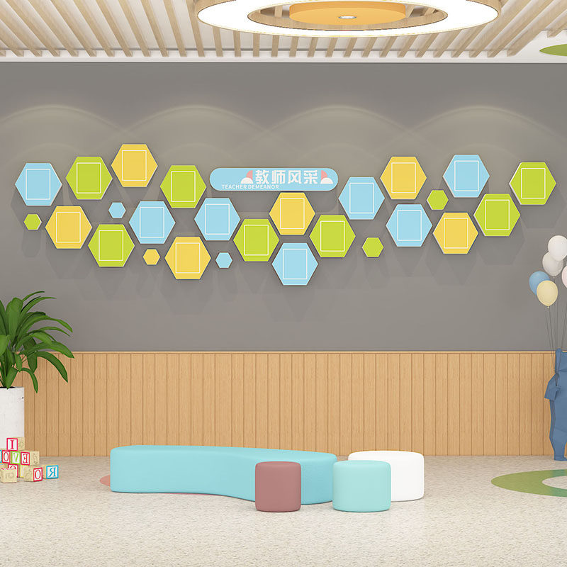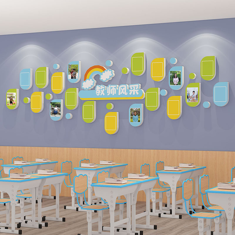 幼儿园教师风采展示墙贴加厚带卡槽大厅环创主题文化墙布置照片墙