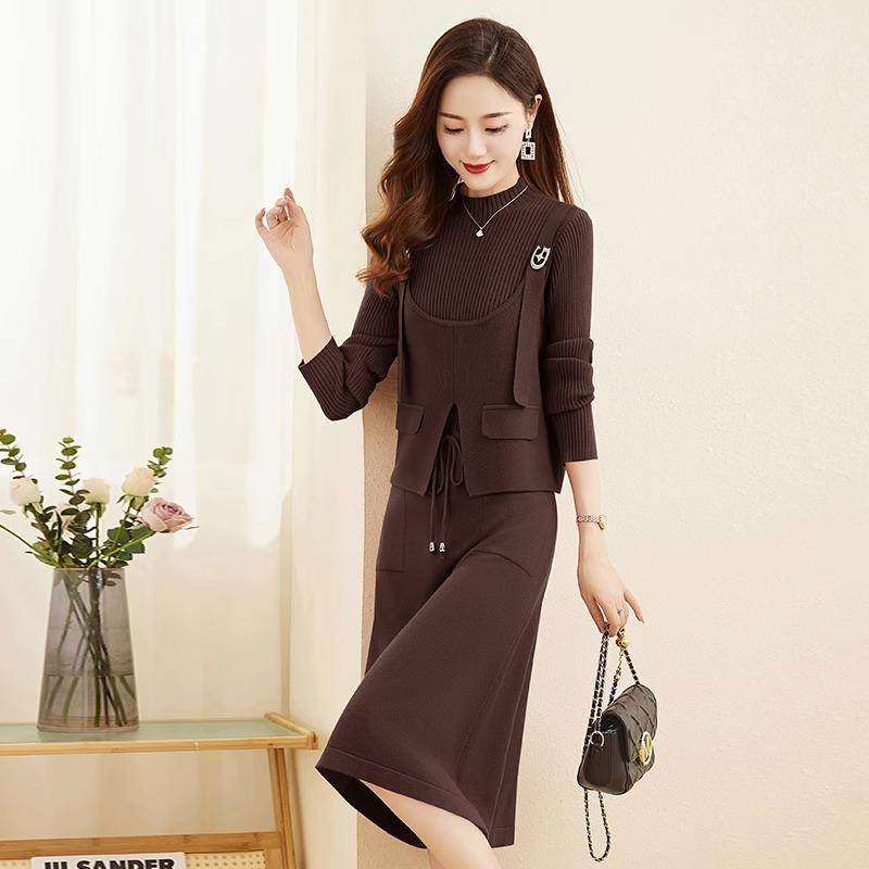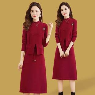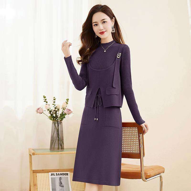 显瘦打底两件套裙 时尚 春秋长袖 针织马甲连衣裙女气质套裙秋冬新款
