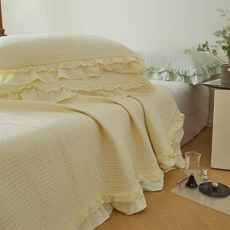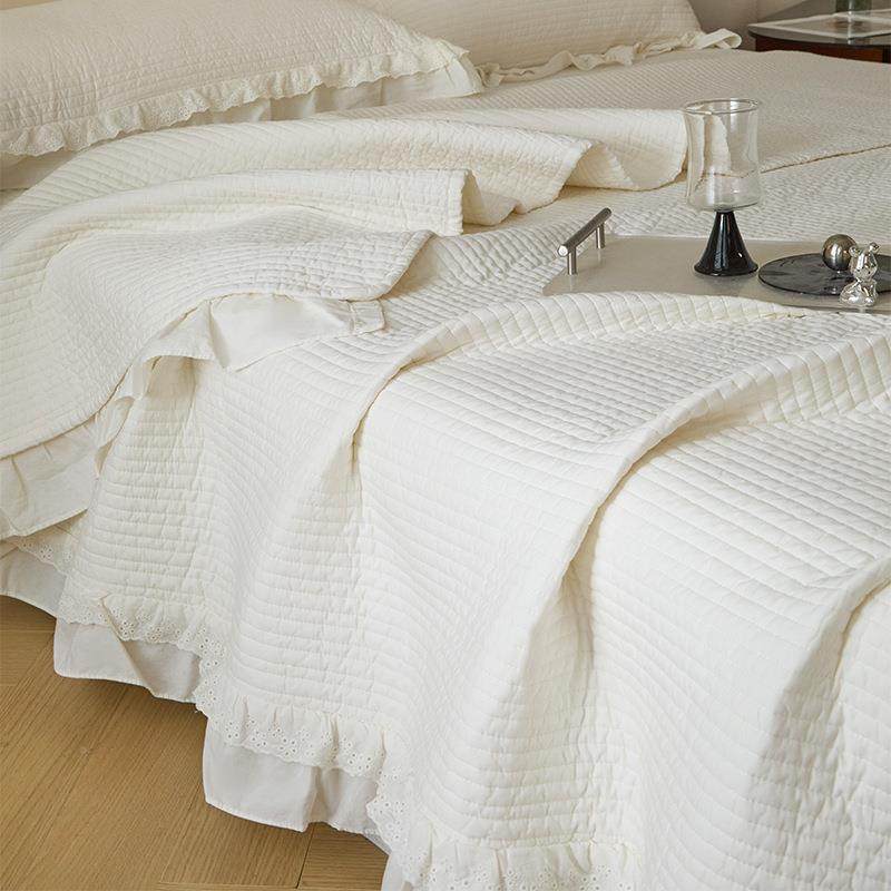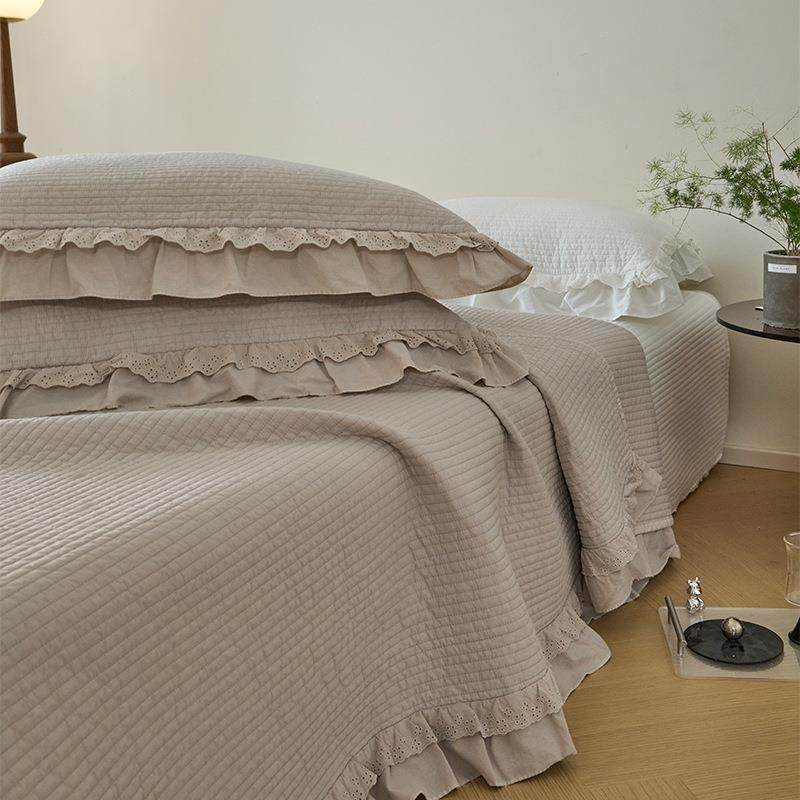 韩风炕高温砂洗绗缝夹花边纯色床盖DRY面三件套双全棉榻榻米盖床