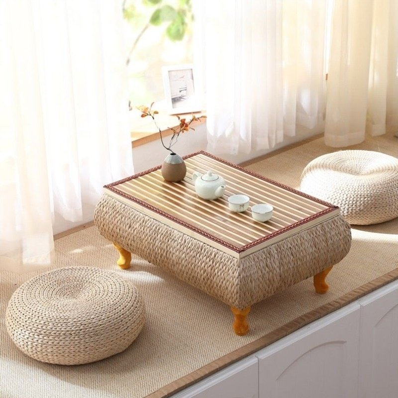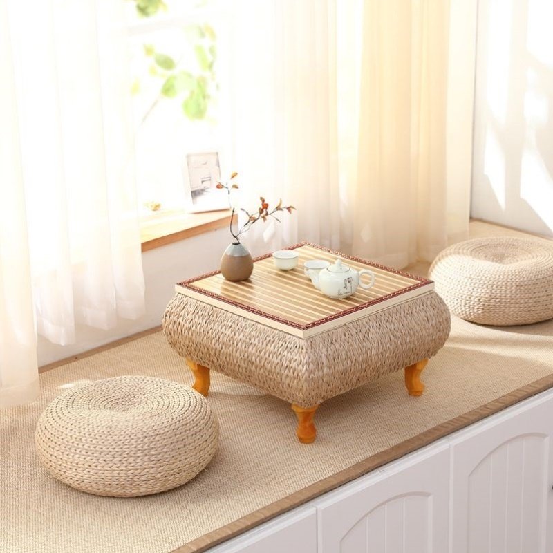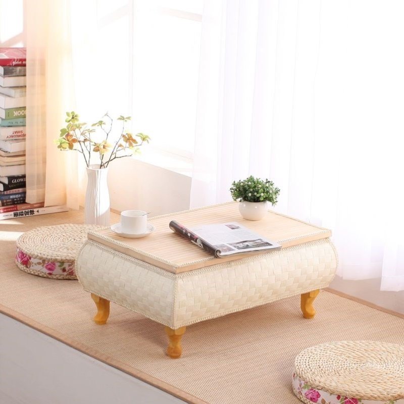 飘窗桌可储物竹编迷你小桌子飘窗茶几榻榻米桌子田园风小茶几炕桌