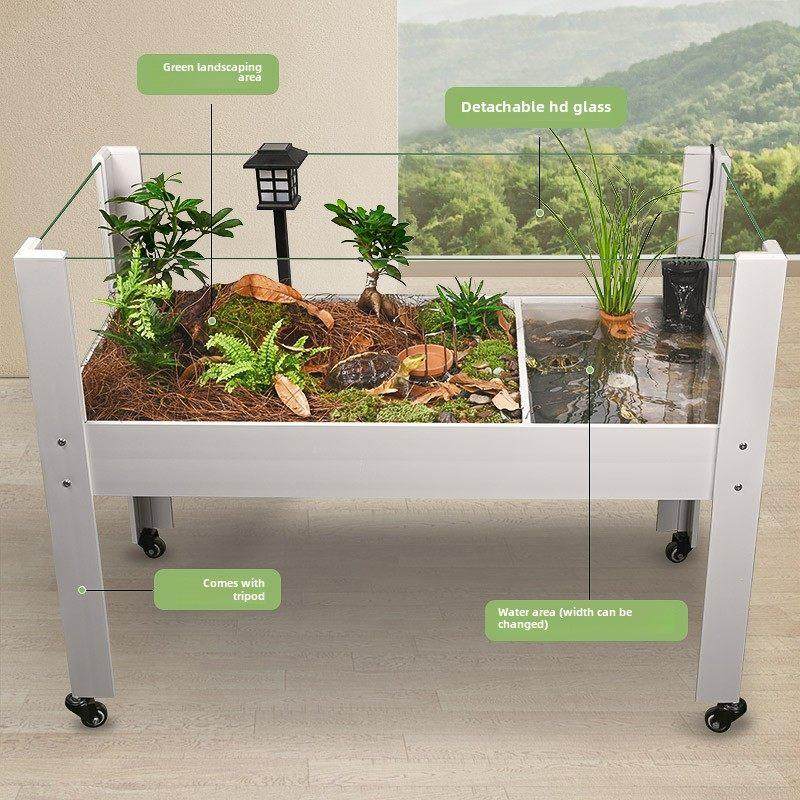 黄缘龟专用缸大型半水龟饲养箱生态造景安缘龟缸带排水乌龟水陆缸
