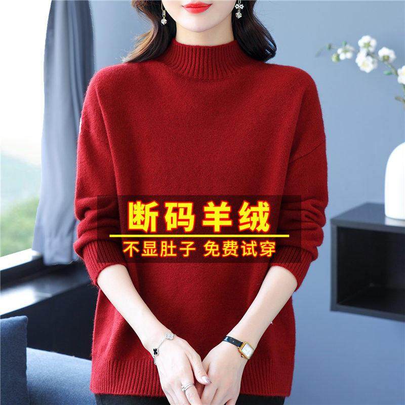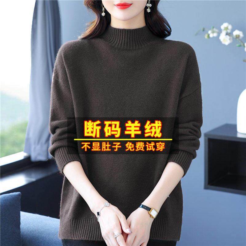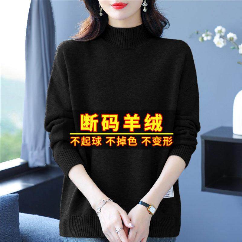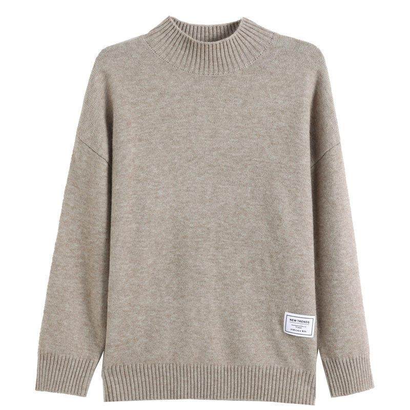 针织打底衫 品牌高级感羊毛衫 女半高领宽松毛衣秋冬加厚羊绒长袖