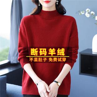 秋冬堆堆高领针织打底宽松毛衣羊毛衫 100%纯羊绒衫 毛衫 女 断码