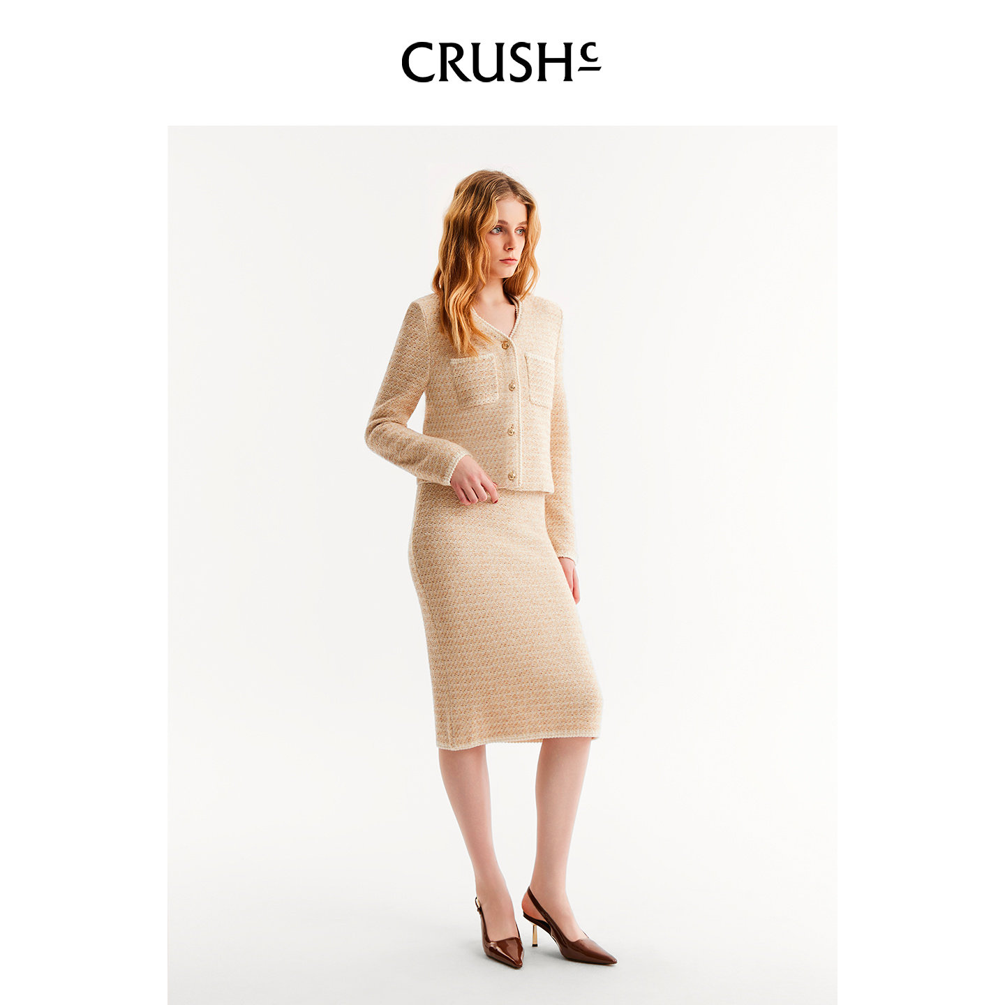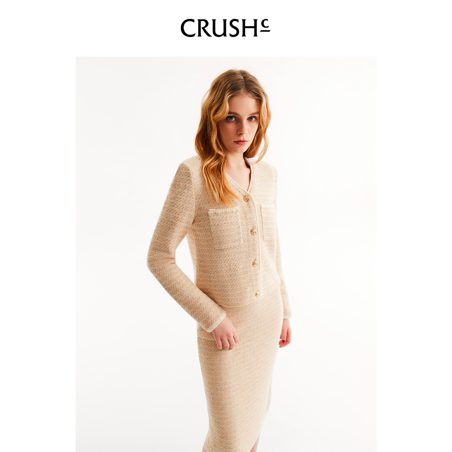 CRUSH 花呢V领箱型夹克上衣小香风外套 Collection2026年早春新款