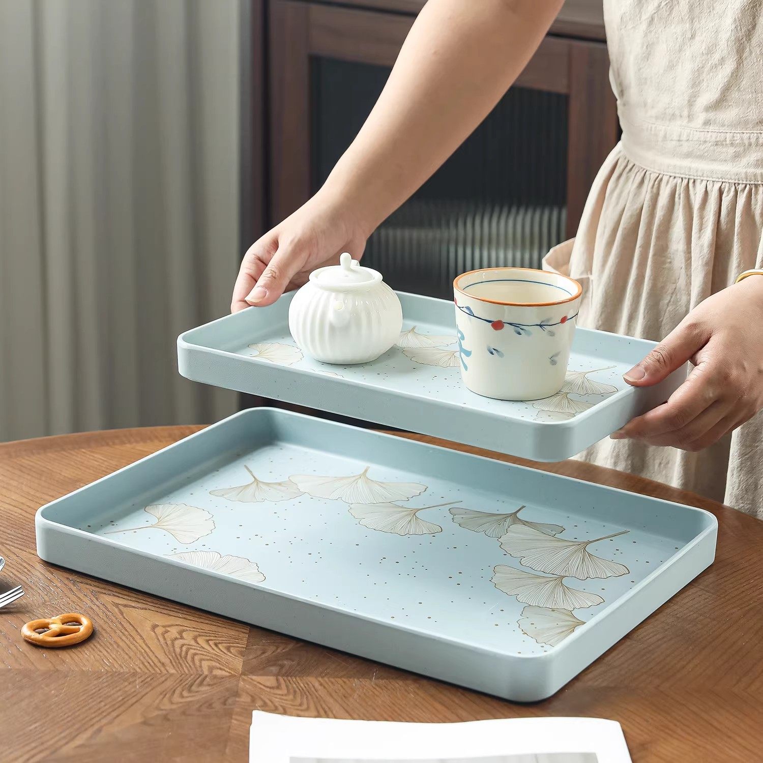 北欧ins托盘家用放茶杯水杯茶盘塑料客厅茶几杯子长方形水果餐盘