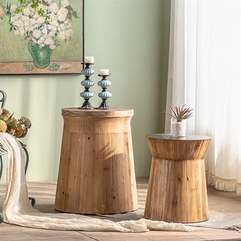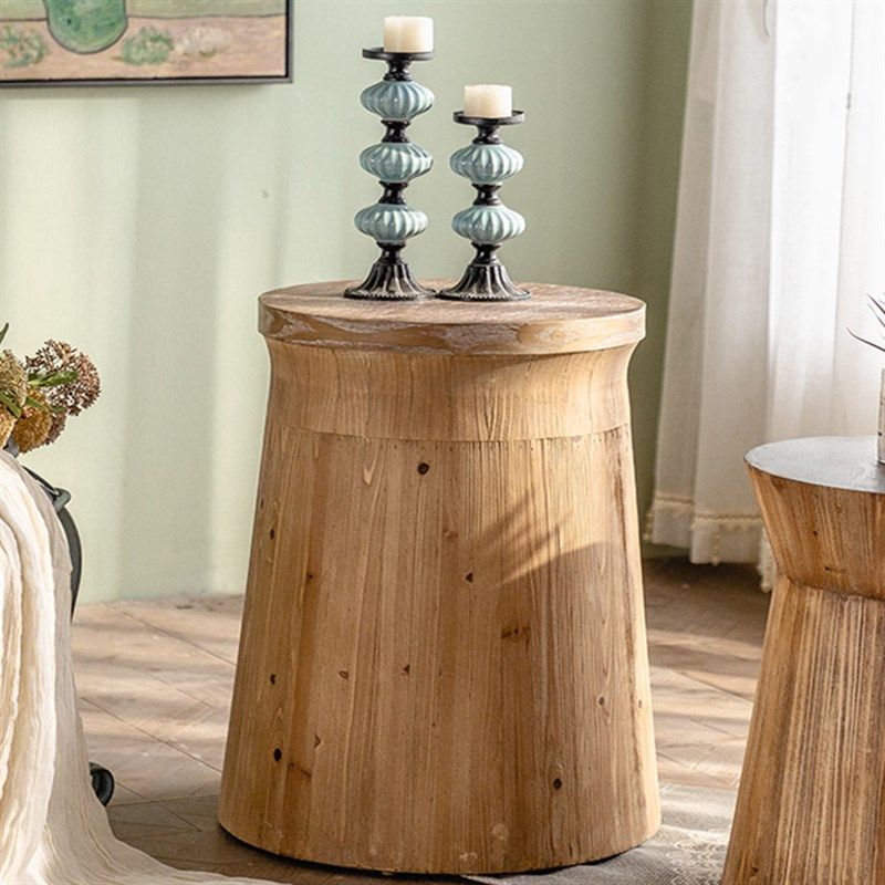 创意实木复古做旧边几客厅沙发边小圆桌民宿家用木墩摆件小茶几