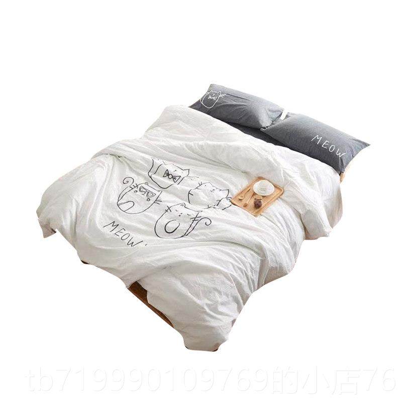 高档纯四棉猫咪小清新刺绣床品水棉件棉套绣花全被套洗4件套床单