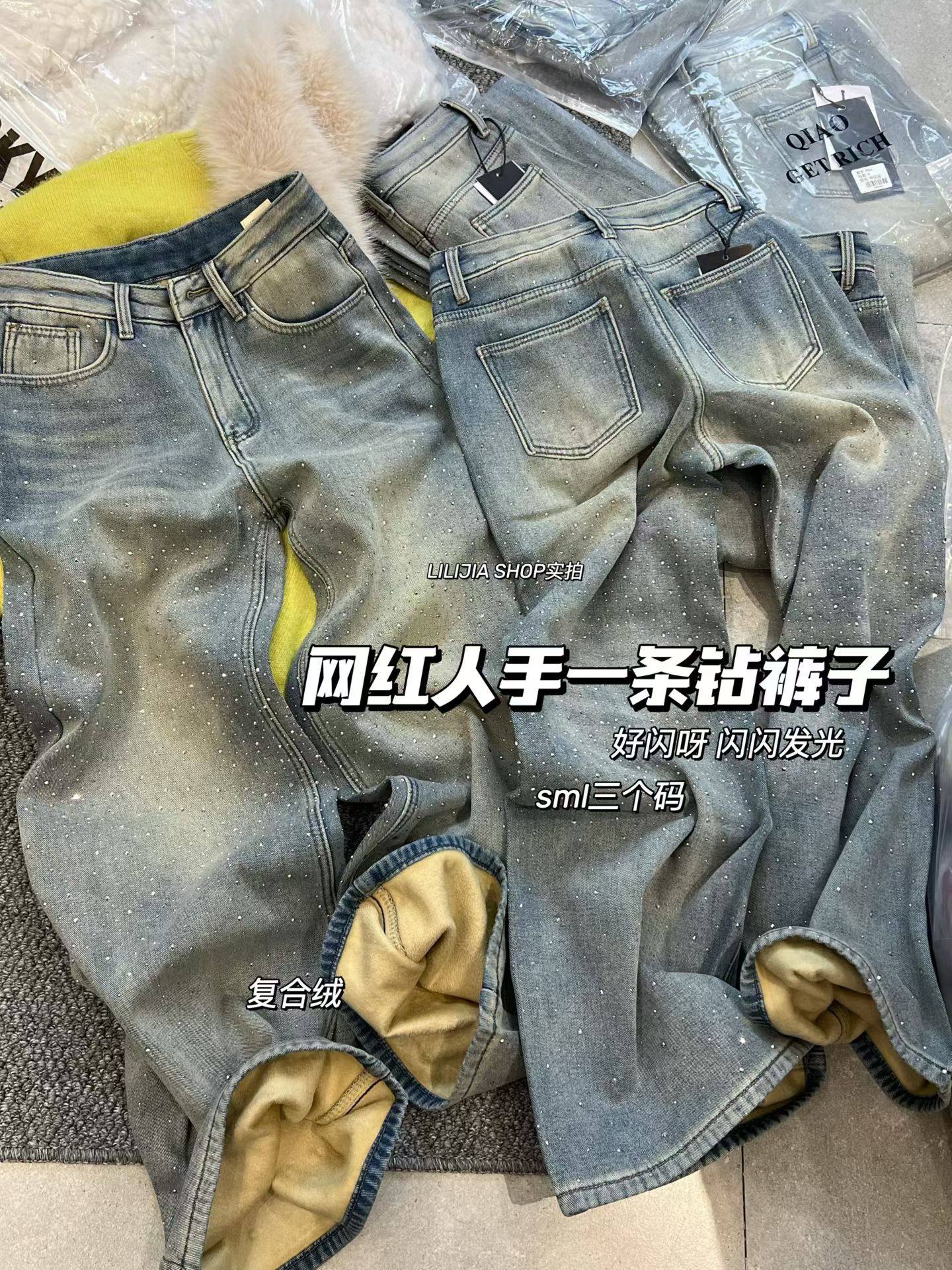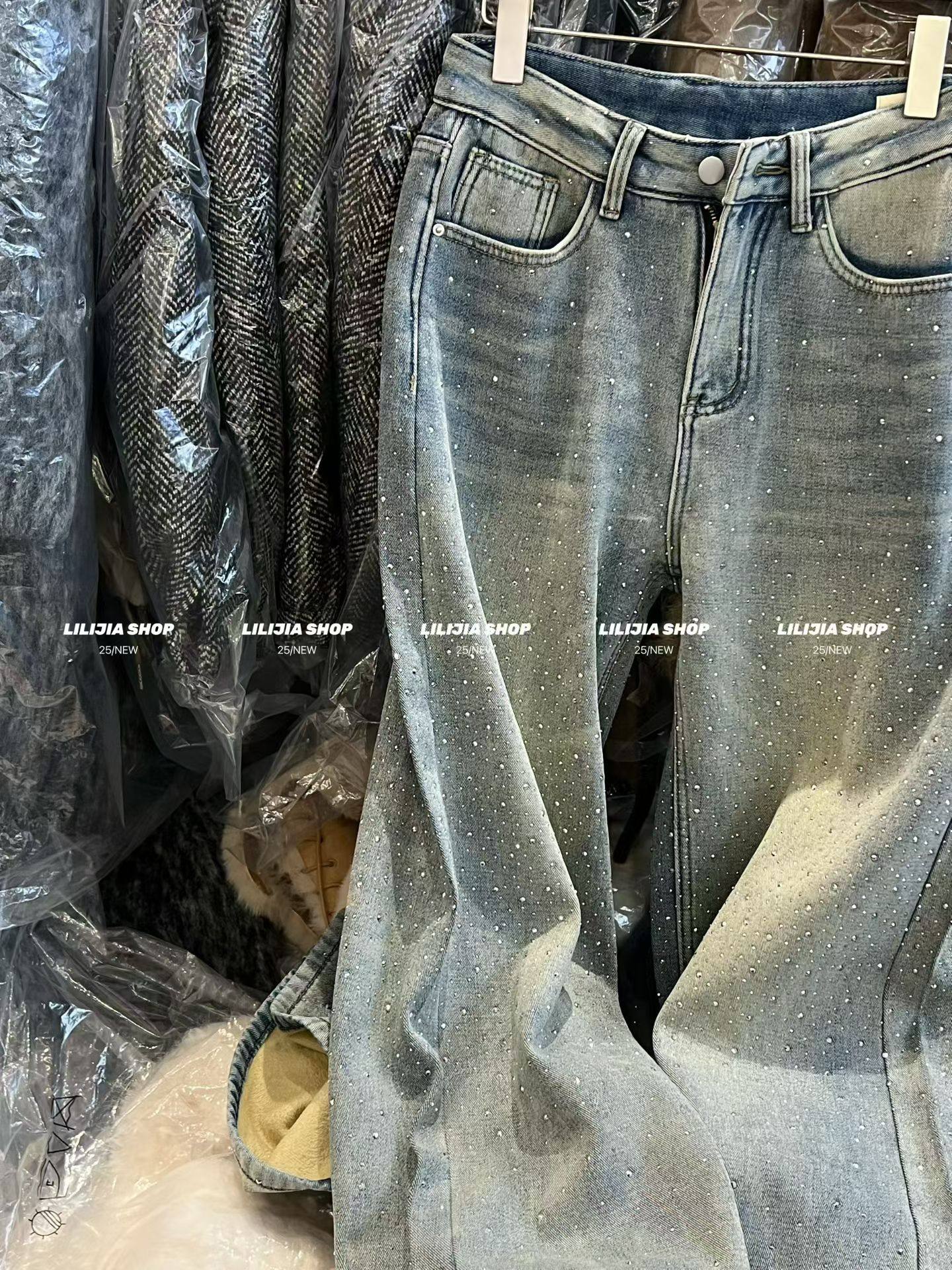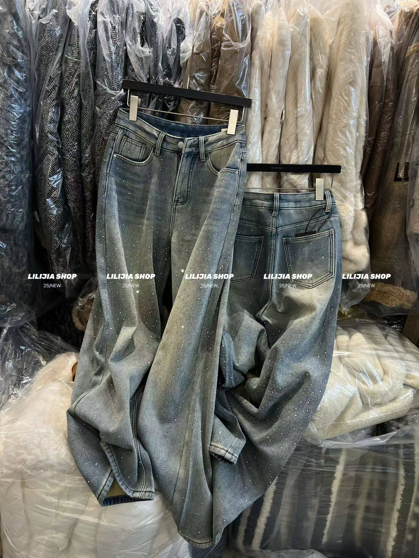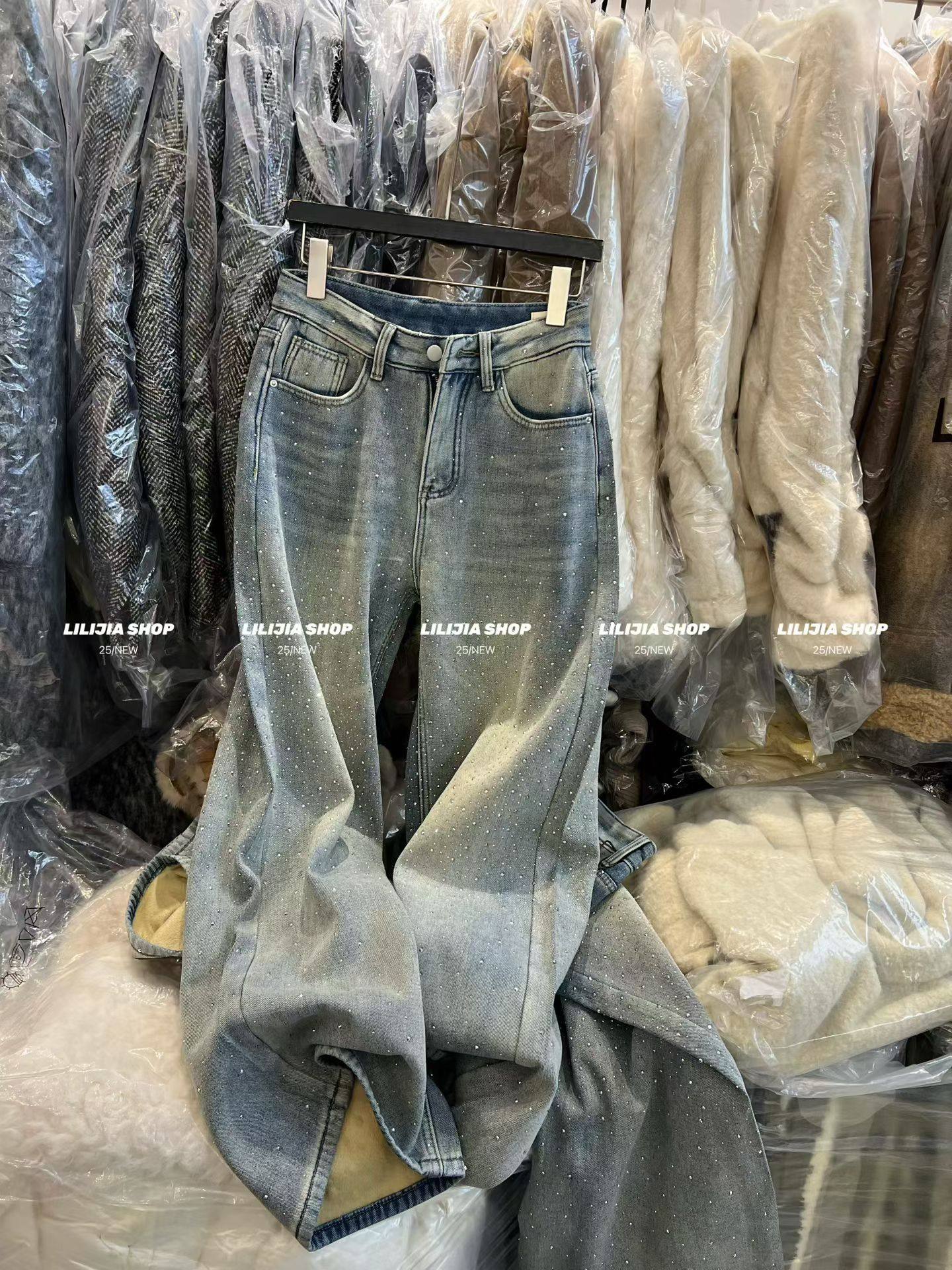 满天星重工烫钻宽松加绒百搭洋气直筒牛仔裤 Miss家 2025秋冬新款