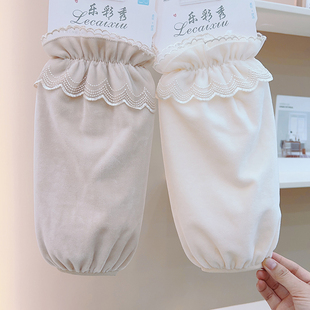 isn蕾丝袖 筒短款 套三层防污时尚 羽绒服防脏袖 白 少女学生套袖 韩版