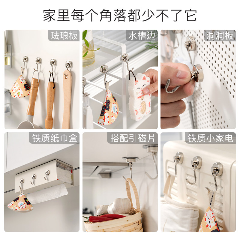 磁吸挂钩免打孔强力磁铁吸铁石小挂钩冰箱门后挂钥匙旋转磁力挂钩