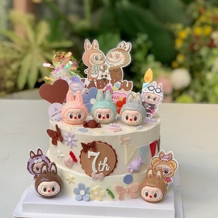 网红可爱拉布布头蛋糕装 扮 饰摆件可爱labubu男孩女孩生日派对装