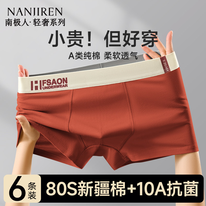 男士 2025新款 冰丝男生四角平角短裤 男款 头纯棉裆夏薄款 南极人内裤