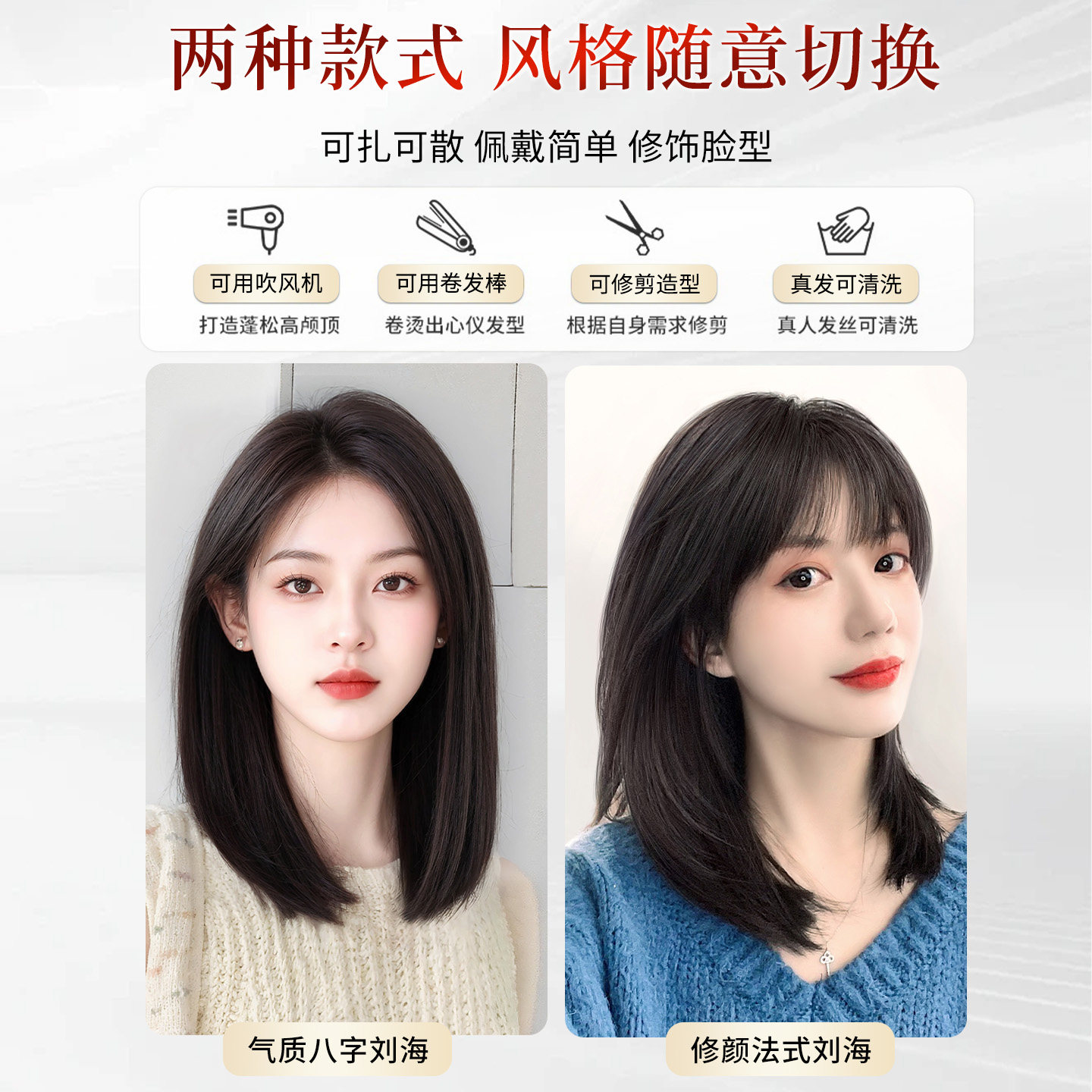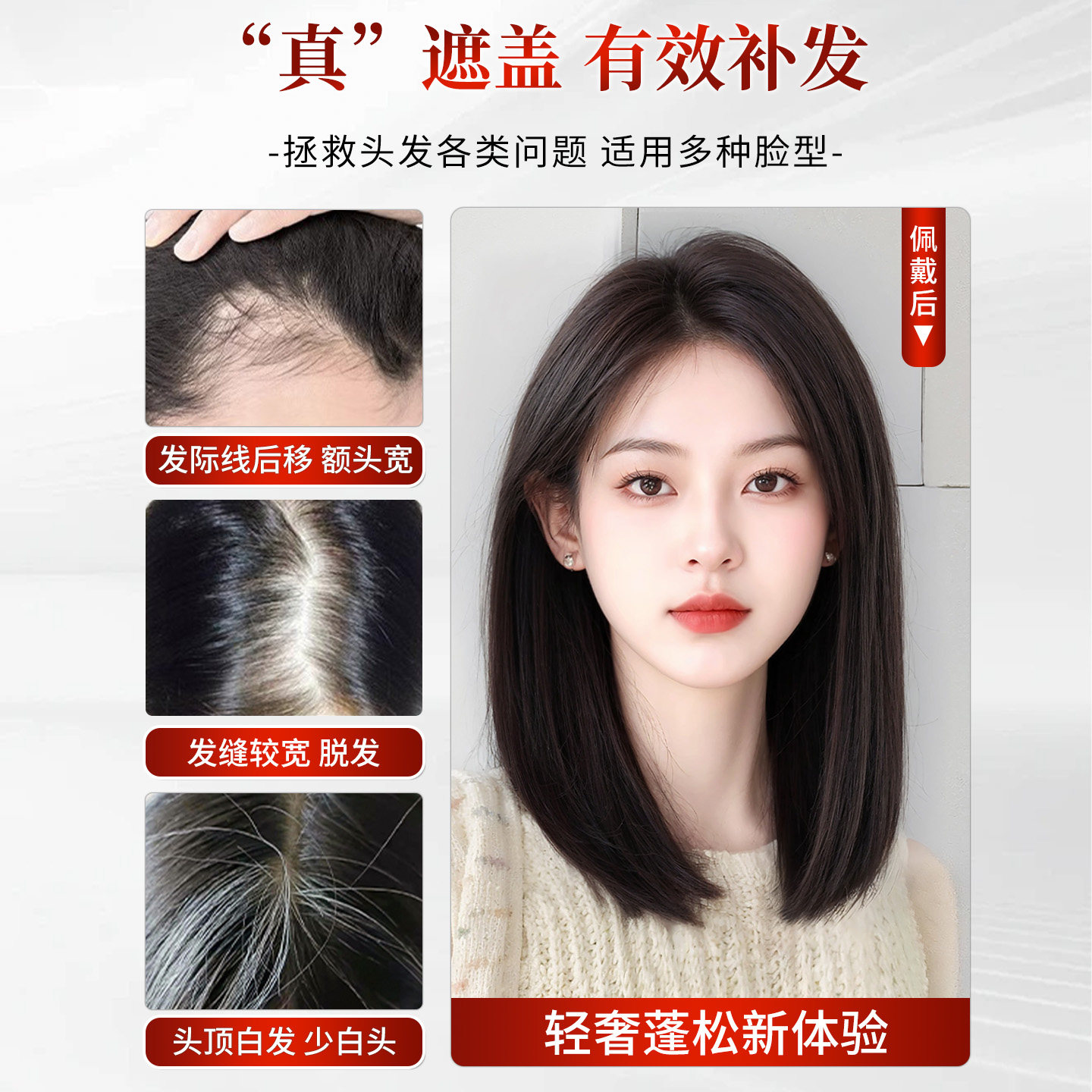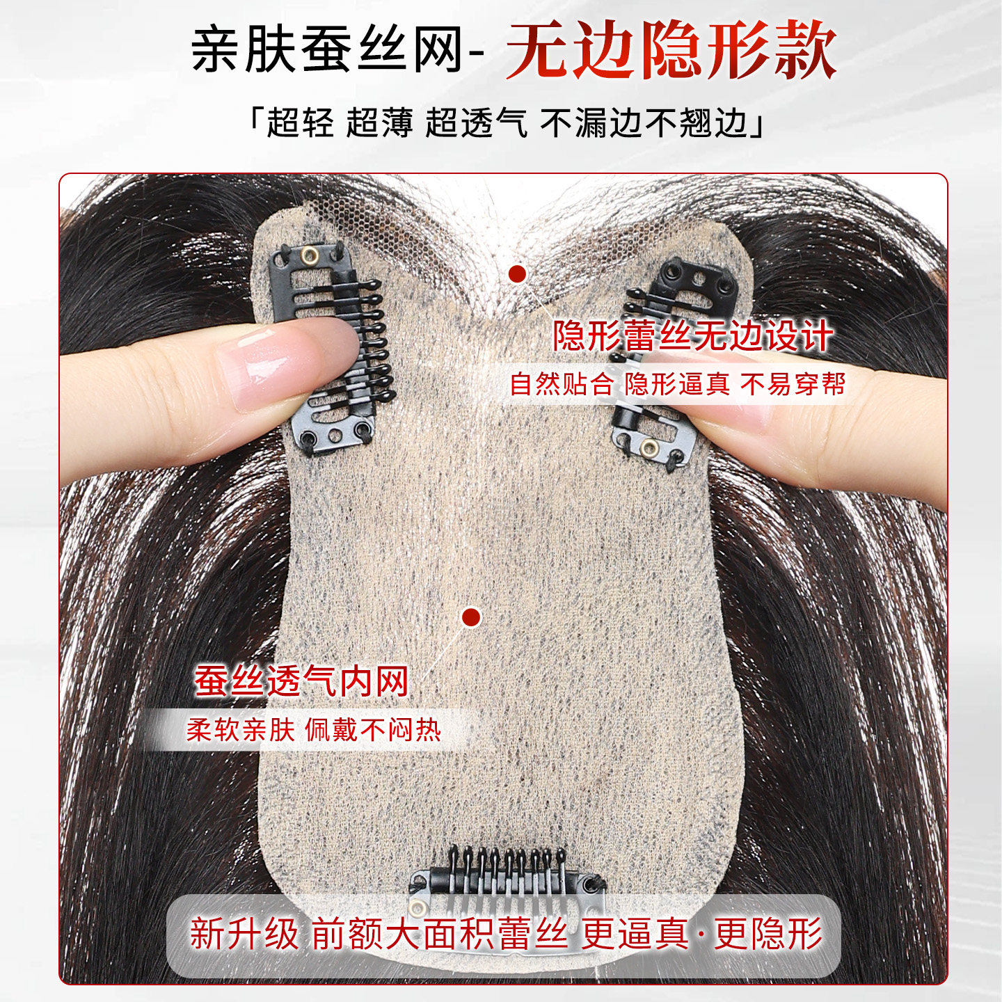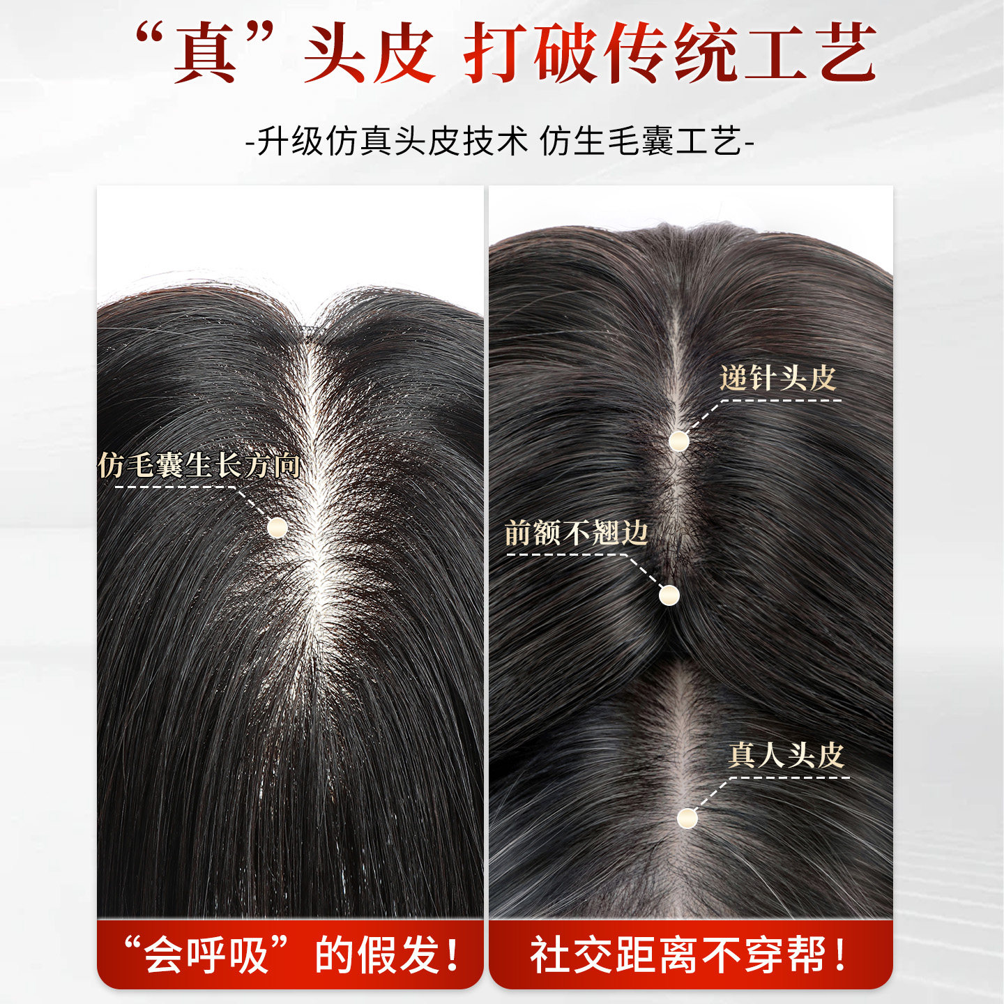 递针假发女片头顶真发全真人发遮白发增发量蓬松自然无痕刘海补发