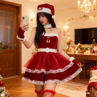 圣诞节服饰女成人小麋鹿节日氛围性感穿搭战袍红色抹胸cos服裙子