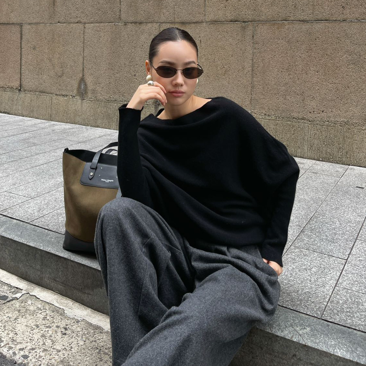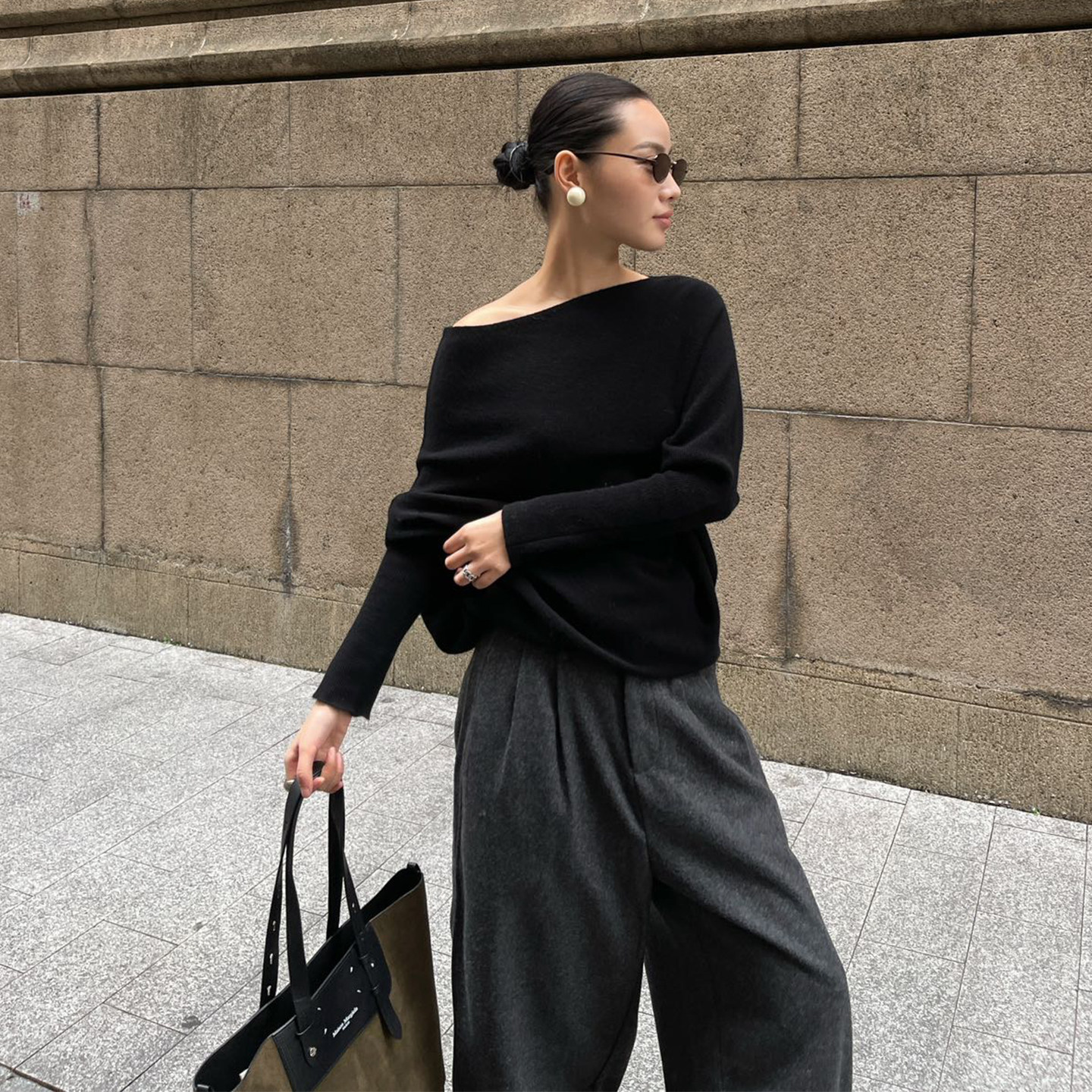 针织打底衫 品牌高级感羊毛衫 女半高领宽松毛衣秋冬加厚羊绒长袖