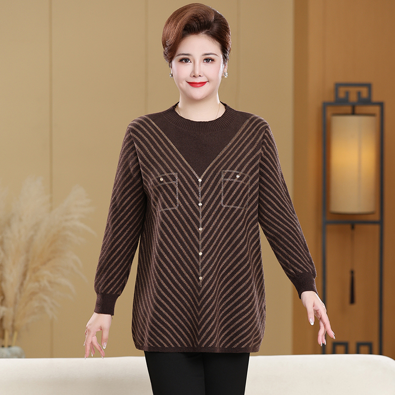 洋气条纹连帽宽松上衣秋冬季 中老年女装 毛衣女两件套 秋套装 妈妈装