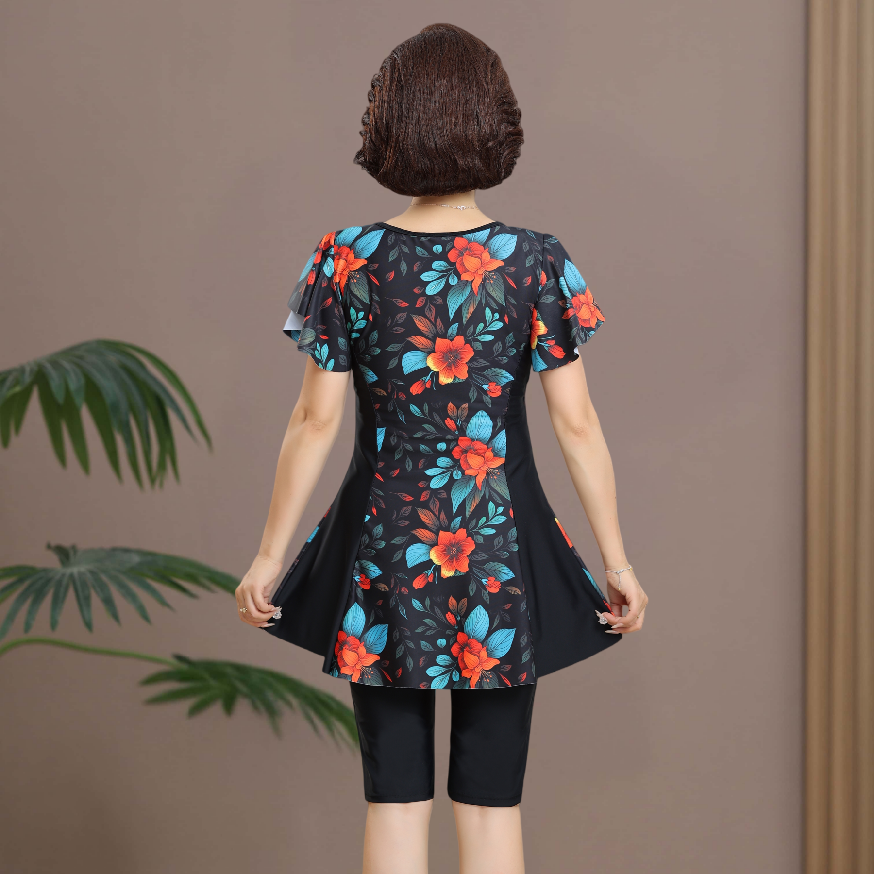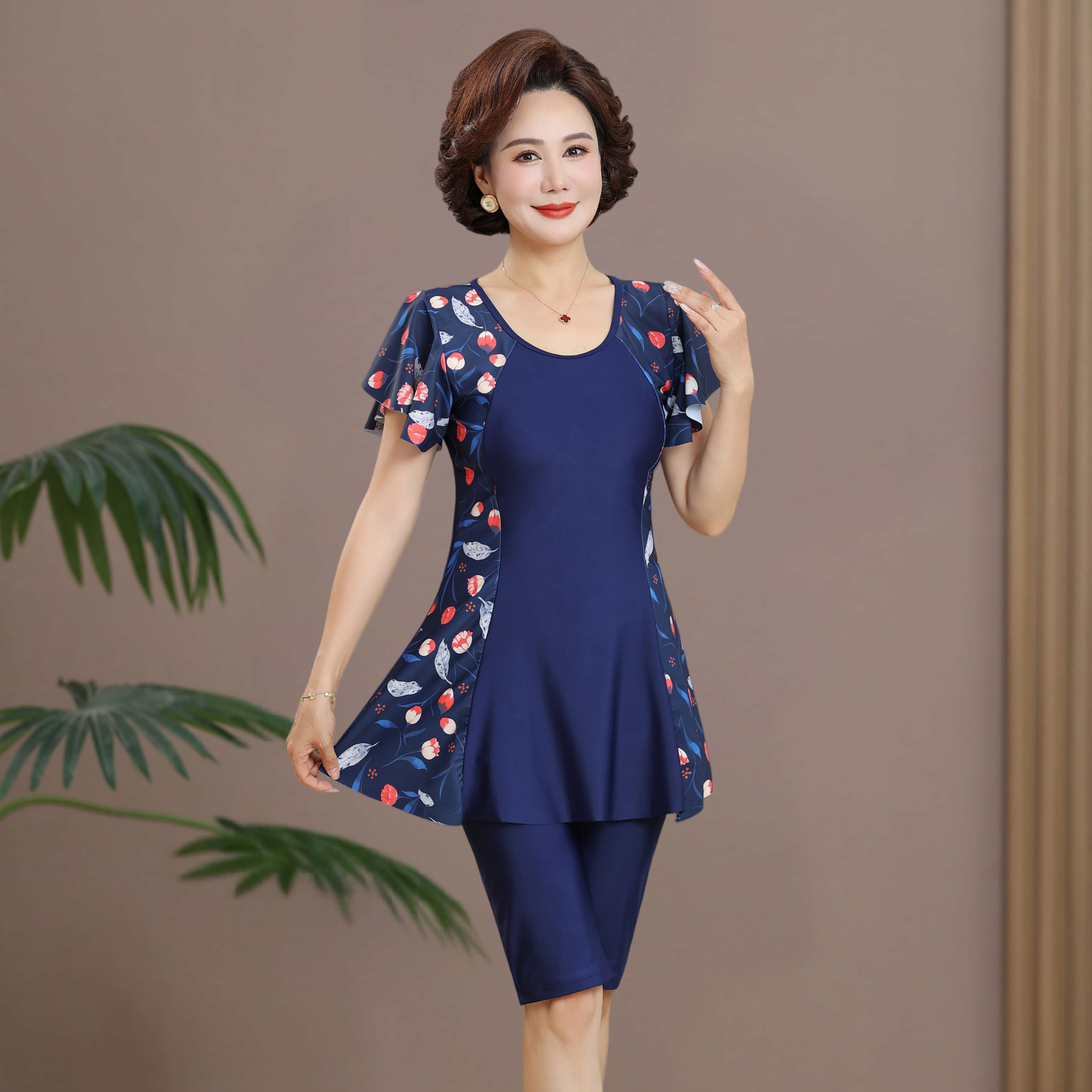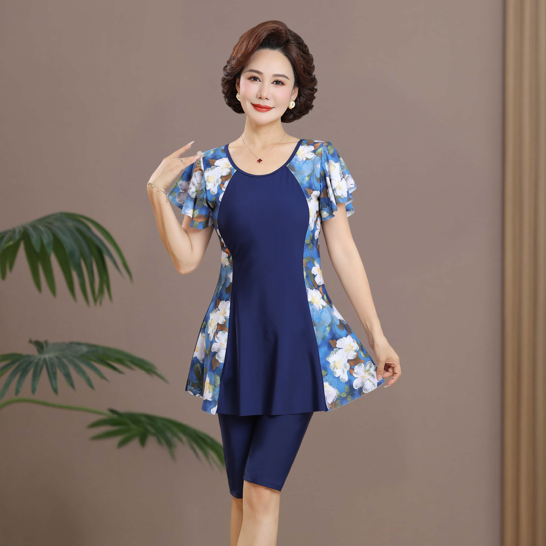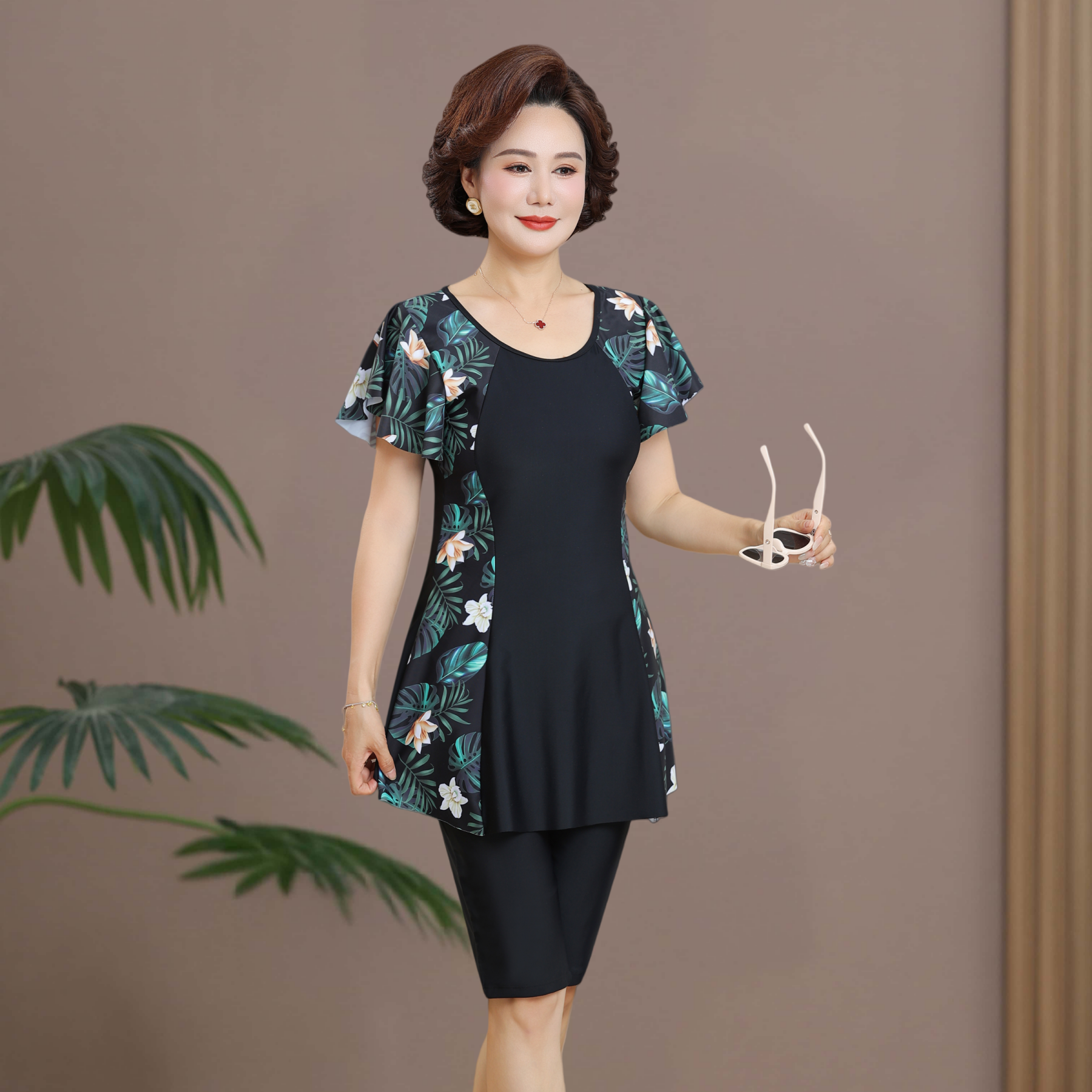 游泳装 遮肚显瘦大码 中老年女士分体中长款 妈妈温泉泳衣女保守新款