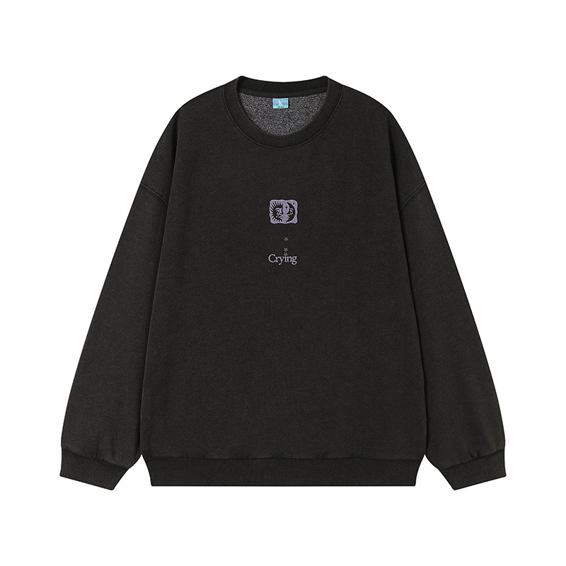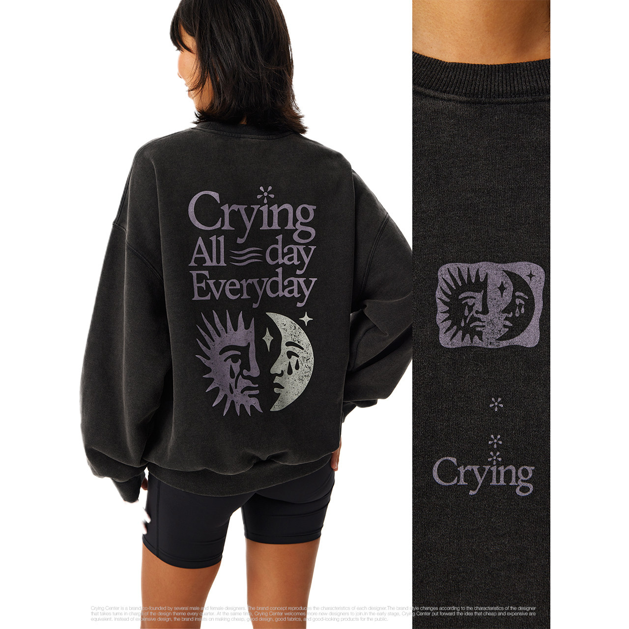 男女款 CryingCenter日月落泪印章 复古水洗宽松软糯加绒圆领卫衣