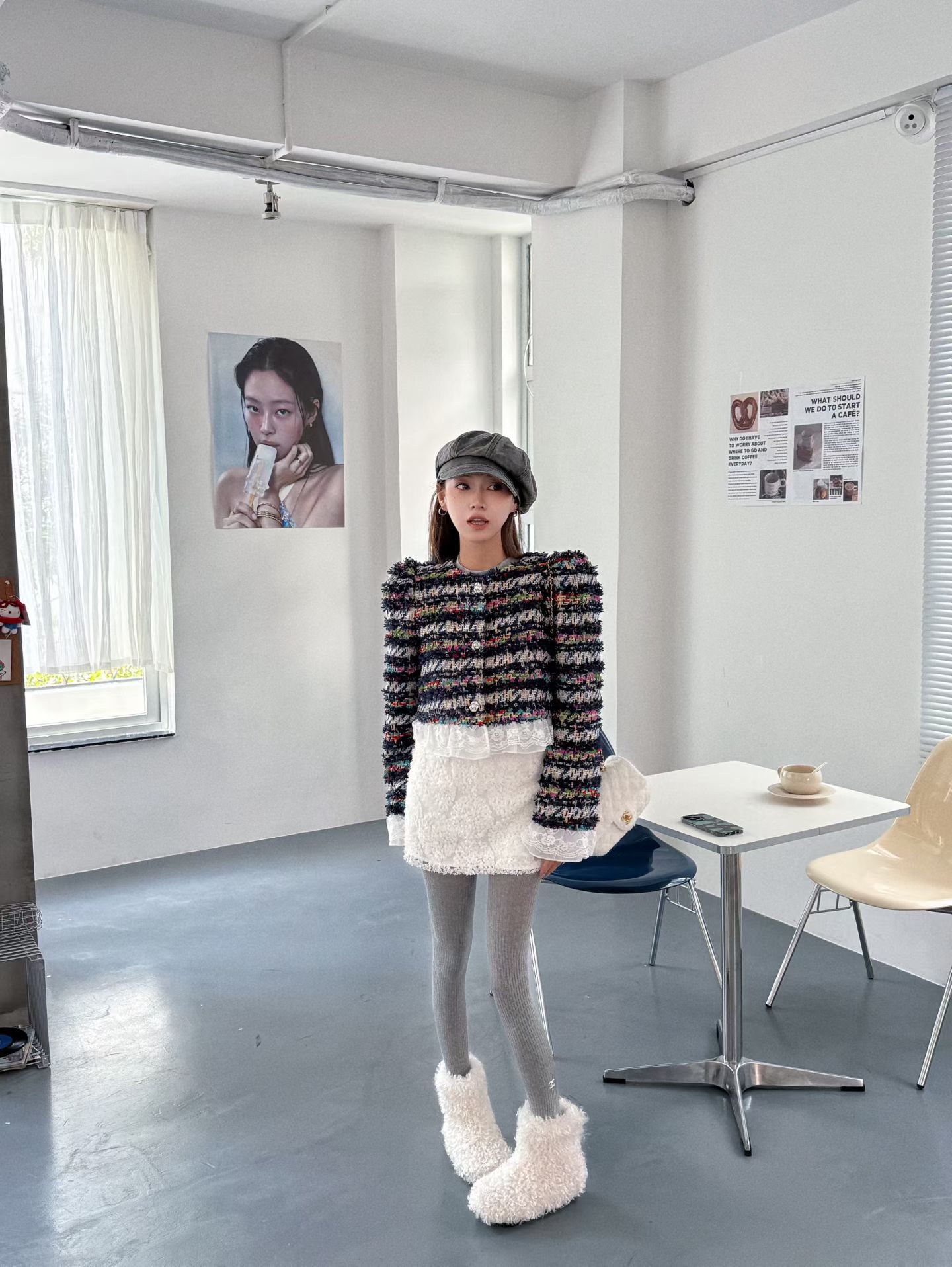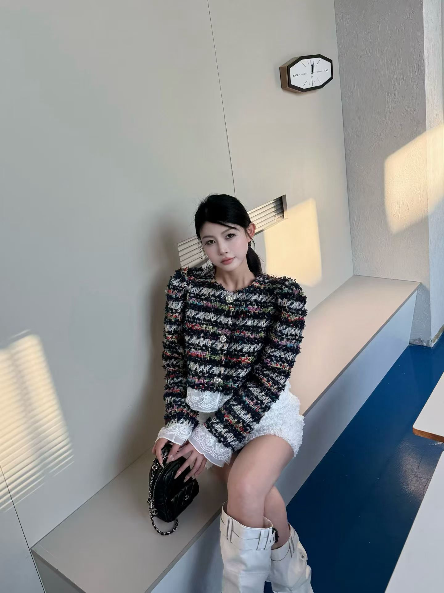 蕾丝拼接气质小香外套 百搭洋气泡泡袖 韩国东大门2025秋冬新款 韩版