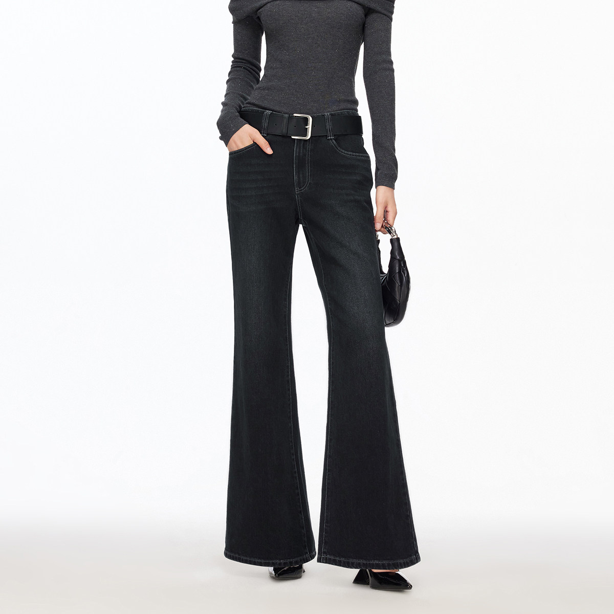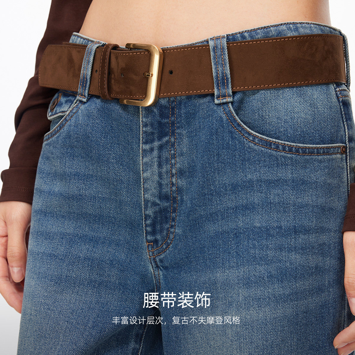 含棉腰带复古洗水微喇裤 Vero 新款 2026春季 326132029 Moda牛仔裤