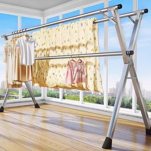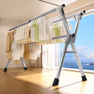 加厚落地室内外服装 挂衣架阳台置地折叠晾晒衣架易干升降衣帽架子
