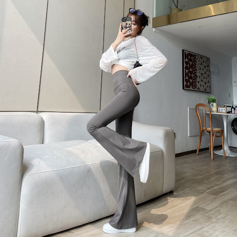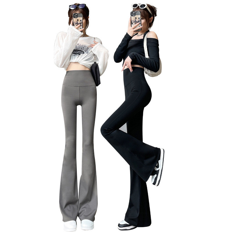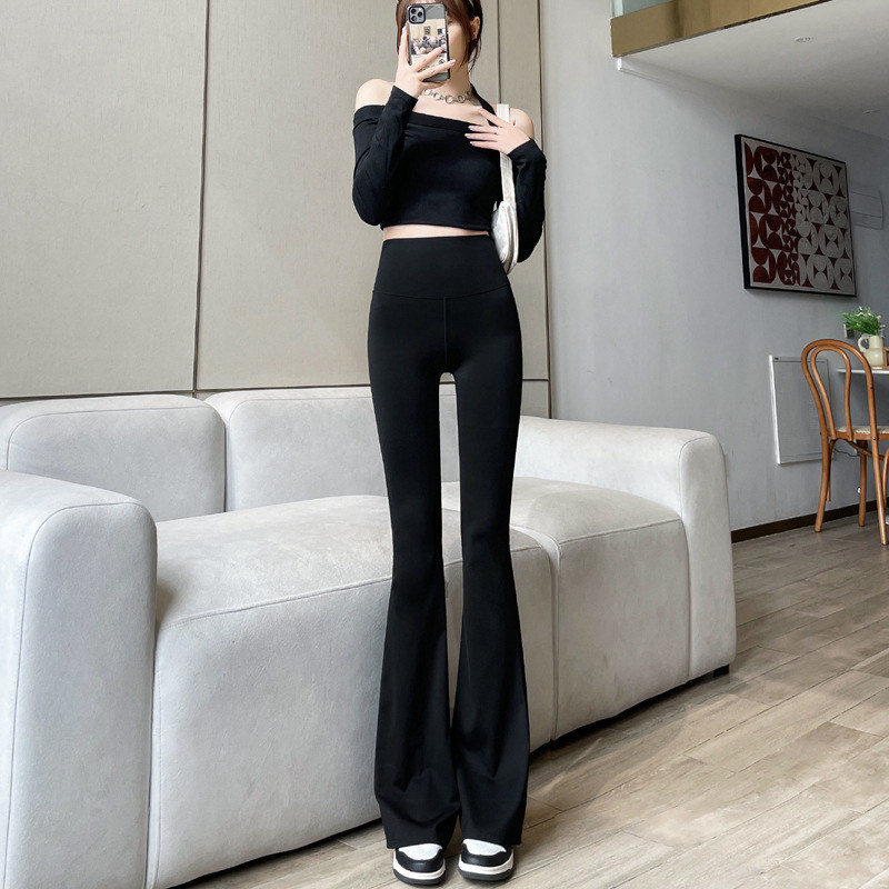 宽松时尚 泽yp黑色微喇鲨鱼裤 垂感长裤 子显瘦拖地裤 春秋喇 女高腰裤