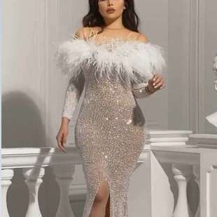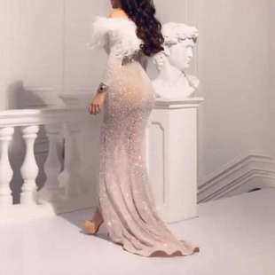 宴会礼服包臀裙婚纱 独立站ebay性感亮片长袖 新款 2020外贸女装